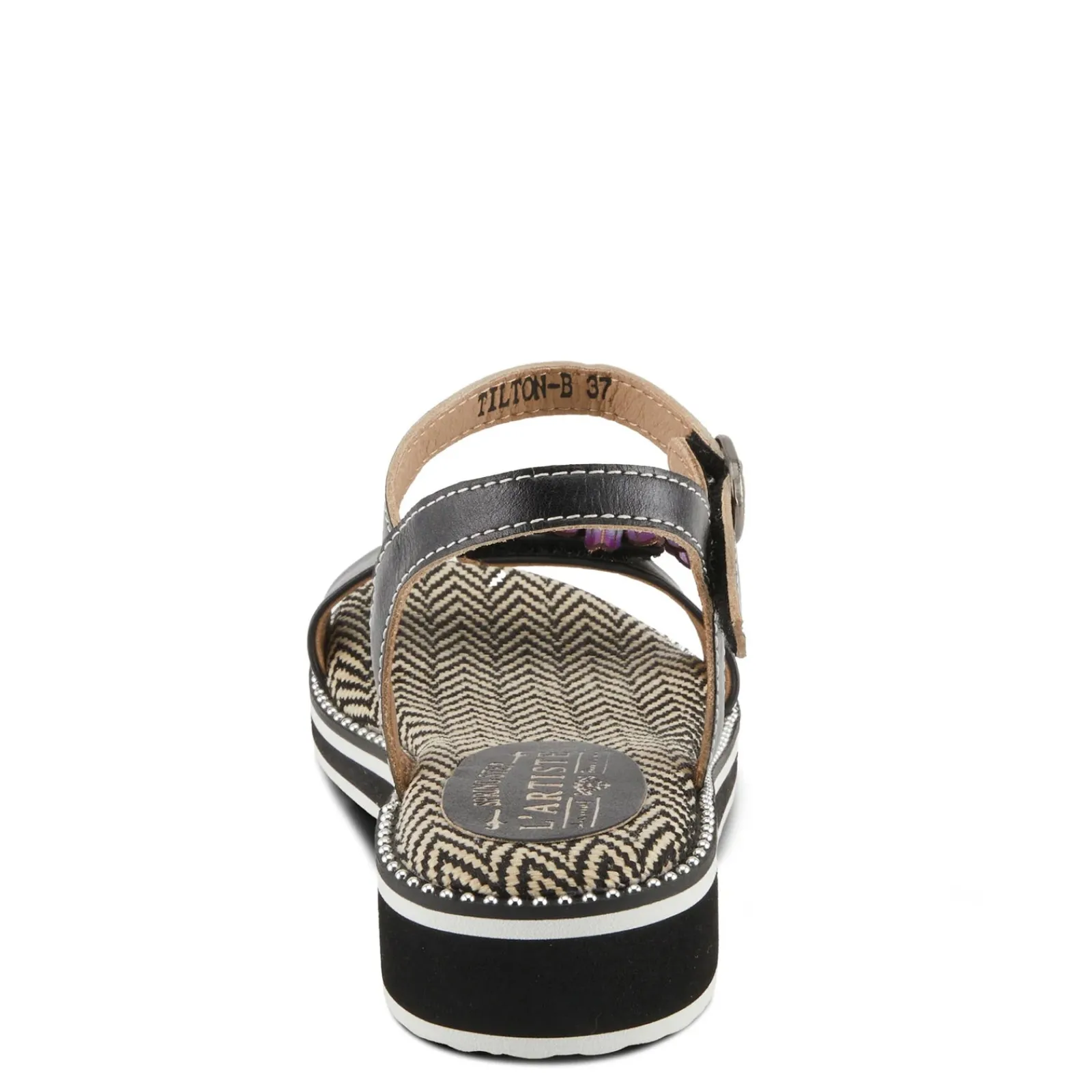Step into pure joy with the L’Artiste Tilton wedge sandal! Embrace casual haute couture with its minimalistic design and unique touches, including studded rivets accentuating the trim and a hand-painted leather flower on the toe strap, ensuring you’ll feel effortlessly chic and stylish with every step!