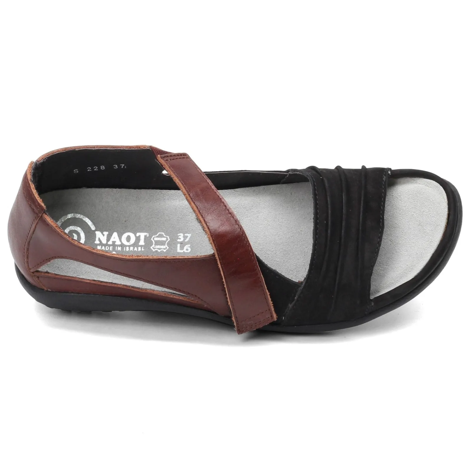 Women’s Naot, Papaki Sandal. Add a touch of style to any outfit with these low heel sandals. This foot flattering design features an asymmetrical strap, pleated accents and a closed back design.