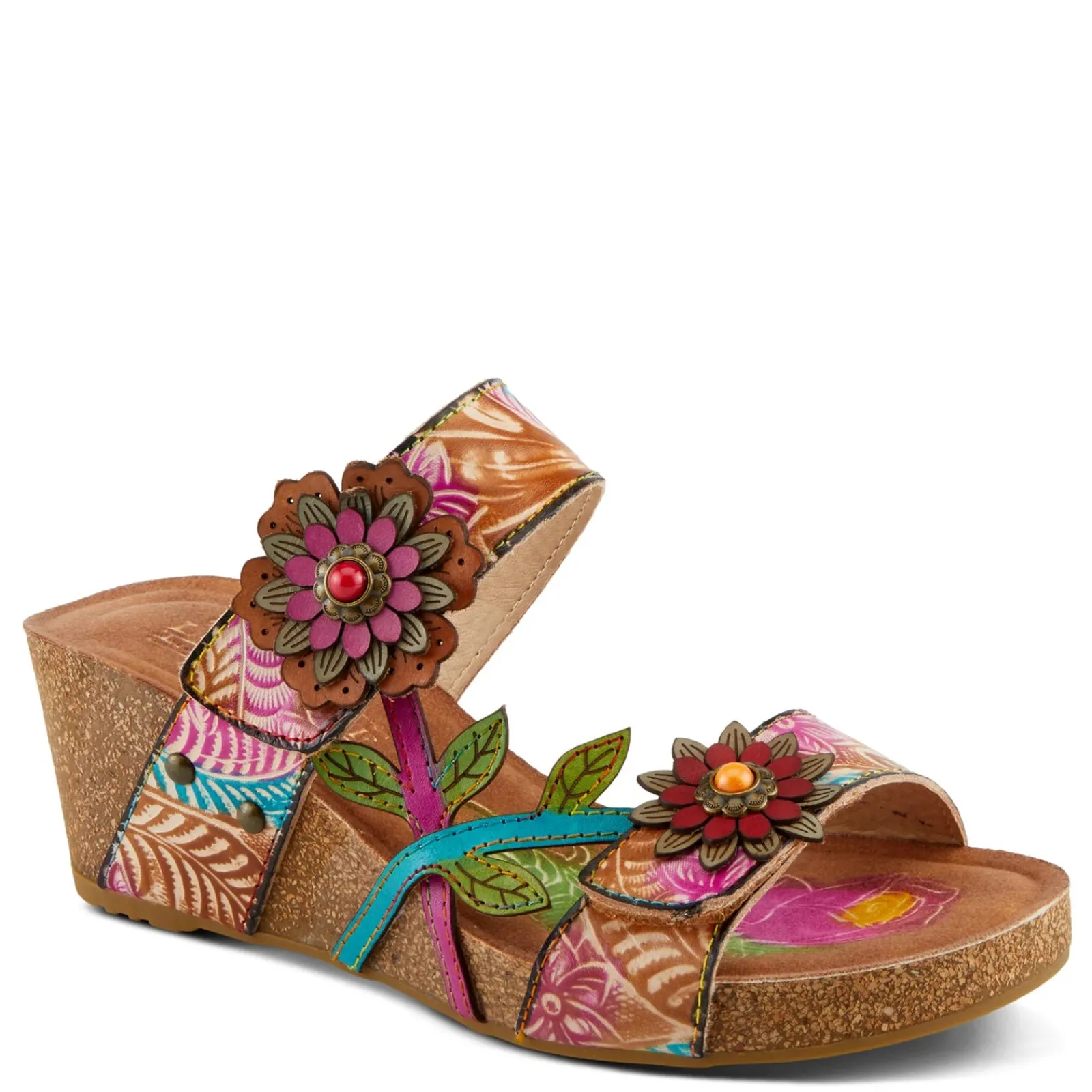 - Hand painted leather upper with 3-dimensional decorative accents