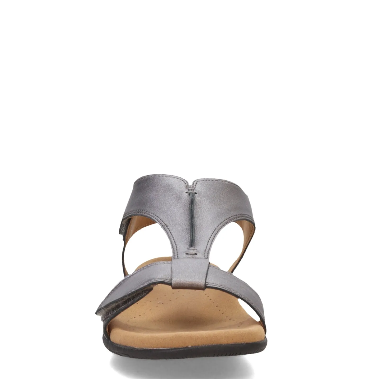 Show off your sense of style in this beautiful leather sandal. The Soft Support premium cushioning in this low heel two strap slide offers metatarsal and arch support, so your legs and feet won’t feel fatigued while you’re running errands all day.