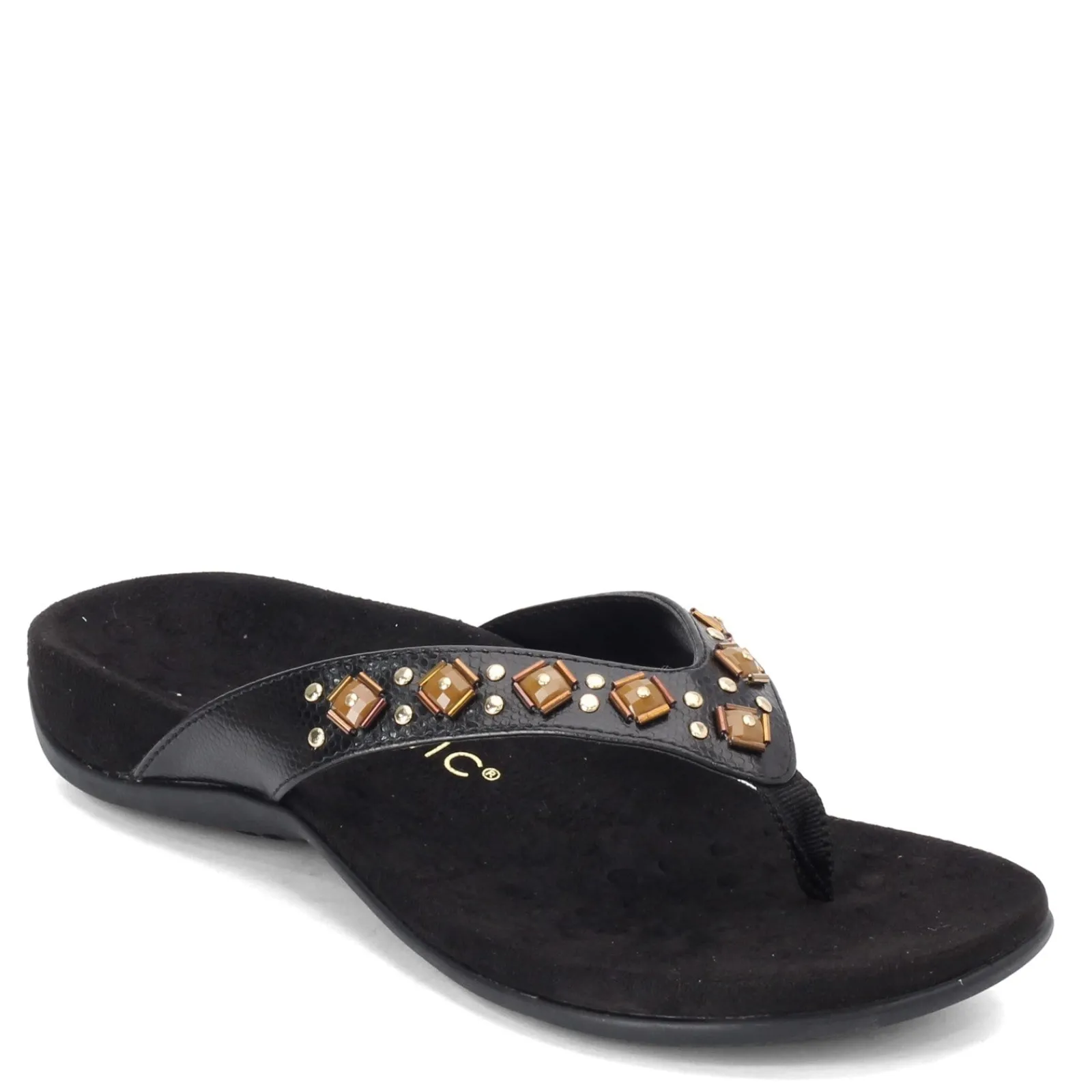 Women’s Vionic, Floriana decorated Thong Sandals. Bring this sandal on vacation to keep you stylish and comfortable all day long.