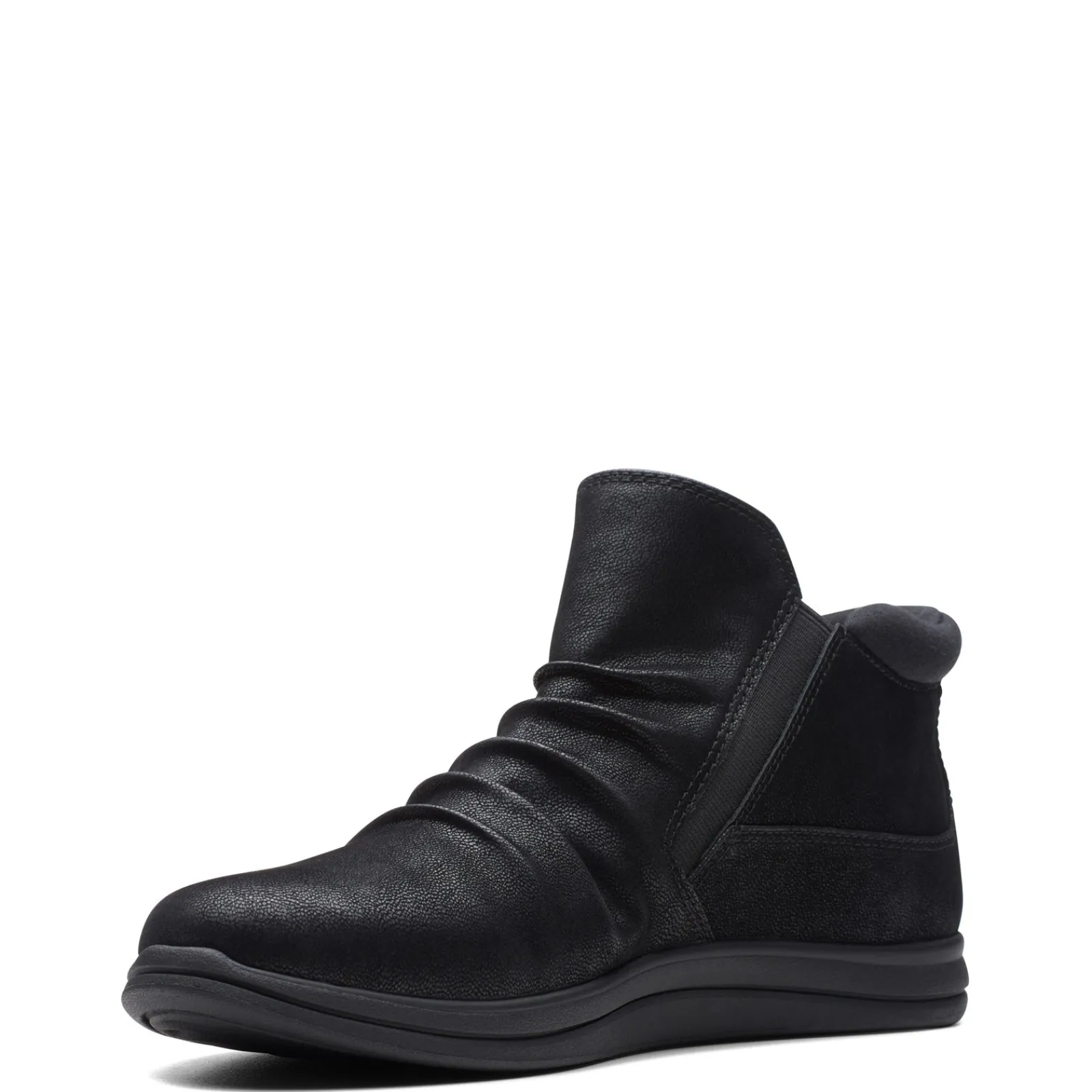 Take your style to the next level with the Clarks Breeze Range booties! Crafted from premium fabric and featuring side stretch details, this shote boot is sure to be your next favorite wardrobe staple Fabric upper in a pleated design with stretch panels for flexible comfort Side zipper closure for easy on and off Removable Cushion Soft footbed delivers superior comfort Soft terrycloth lining Durable, slip-resistant TR sole Part of the Cloudsteppers Collection