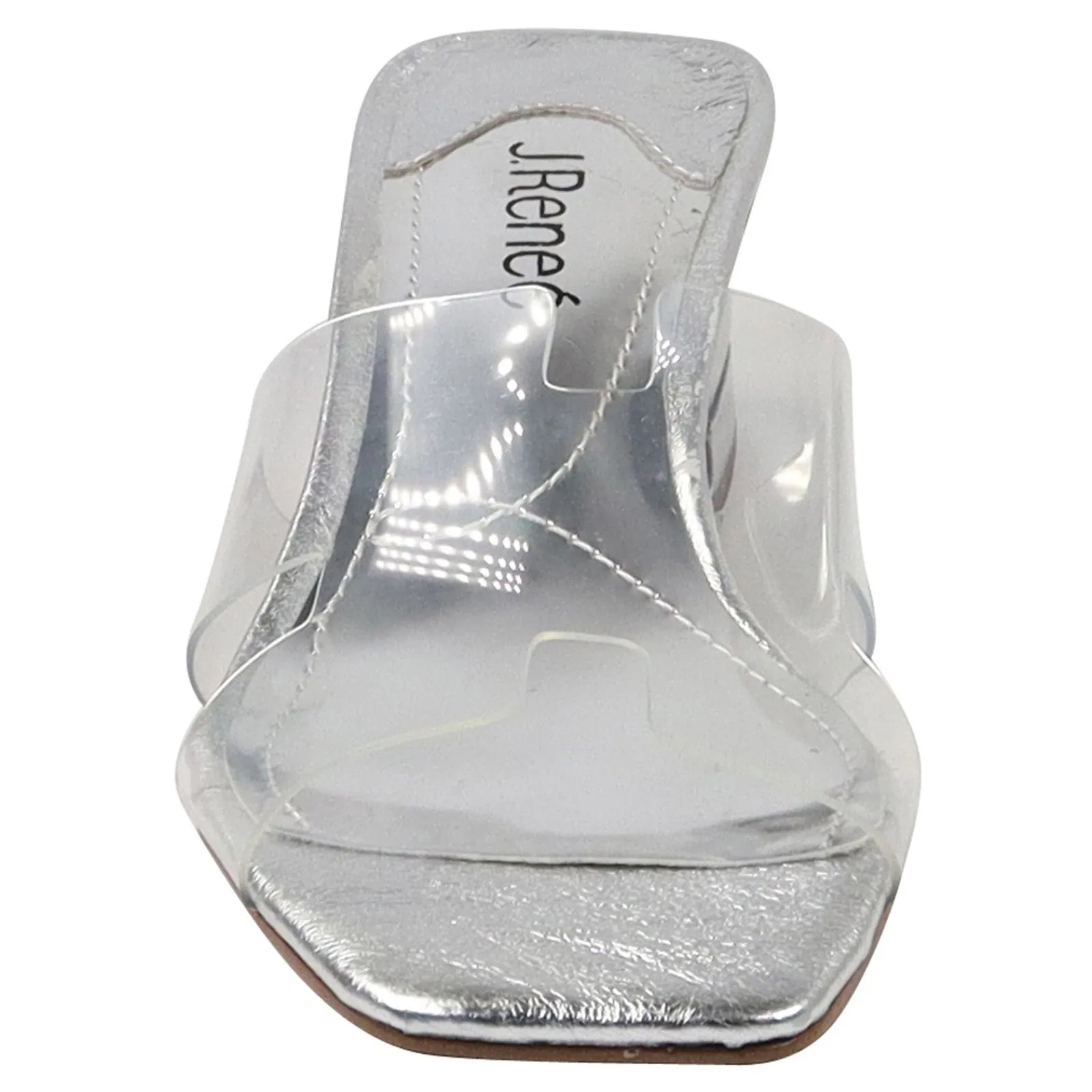 Women’s J Renee, Rafaela Sandal. Make a statement in this dazzling, low heel sandal. They feature an eye-catching metallic heel with clear vinyl material for a dressy look and a memory foam and latex footbed that delivers all-day comfort.