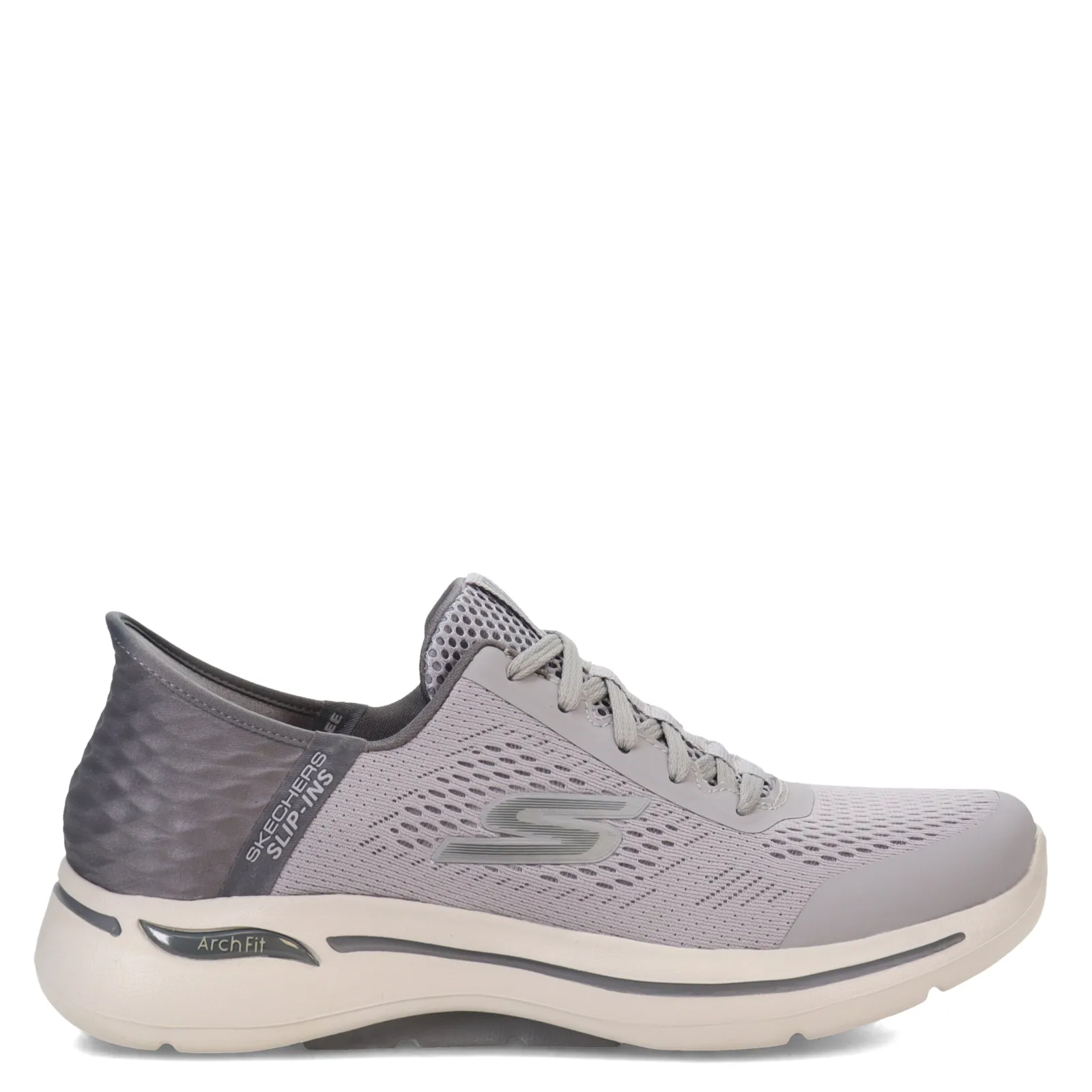 Men’s Skechers, GO Walk Arch Fit Slip-Ins – Simplicity Walking Shoe. The GO Walk Arch Fit shoes are made with Skechers’ Hands Free Slip-ins technology, which features a bungee lace up front combined with a tongue pull tab and a Heel Pillow collar for an easy on and off with added support.