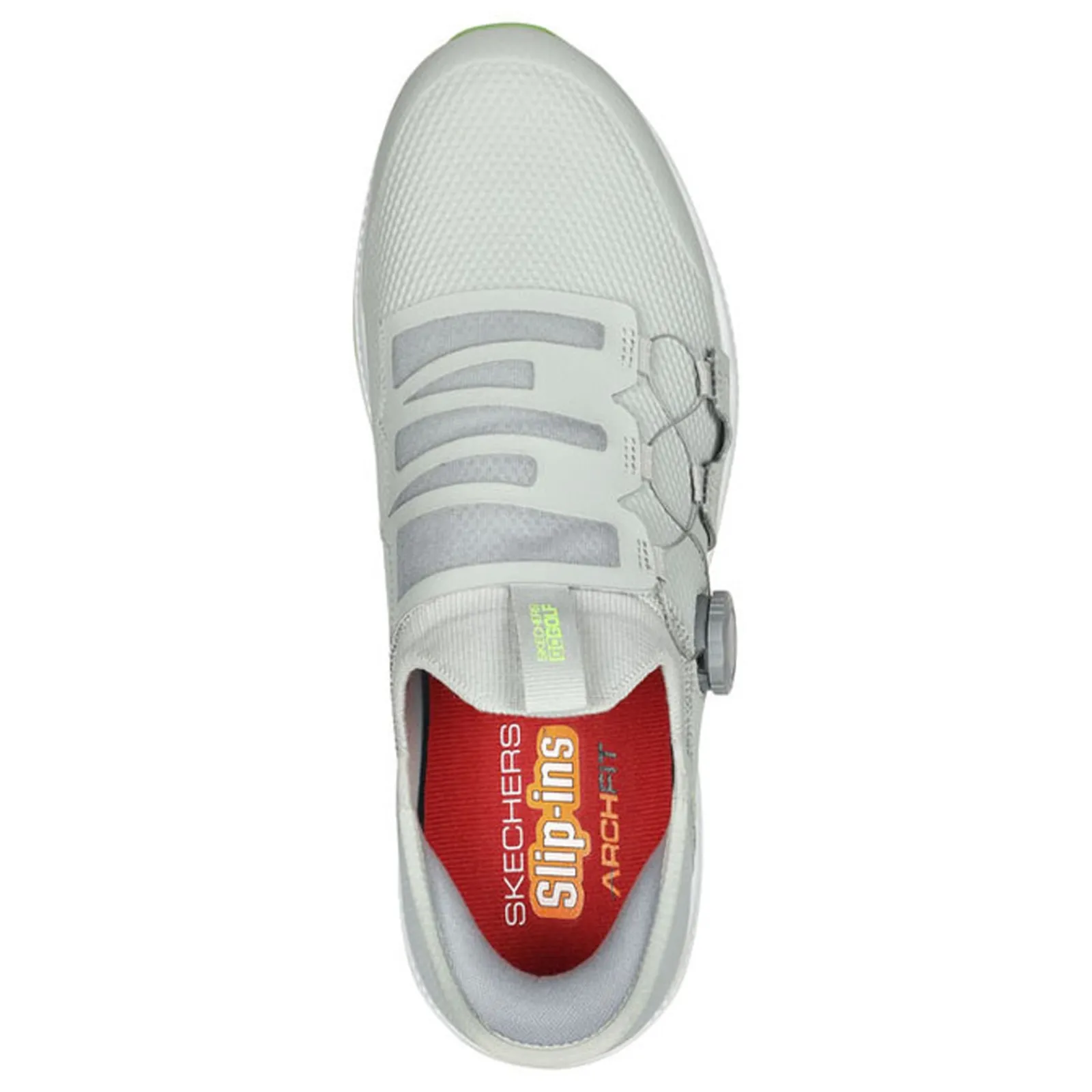 Comfort and style are key in these Skechers GO GOLF Elite 5 – Slip ‘In shoes. Designed with our exclusive Heel Pillow, this waterproof golf shoe features a synthetic upper with a unique Twist Fit closure, removable Arch Fit insole and a GRIPFLEX spikeless traction outsole for superior traction and flexibility Easy care synthetic upper in a waterproof design with Hands Free Slip-in styling Twist Fit dial closure for an adjustable precise fit Removable Arch Fit insole system with podiatrist-certified arch support Heel Pillow holds your foot securely in place Padded collar and tongue GRIPFLEX spikeless TPU outsole for superior traction and flexibility