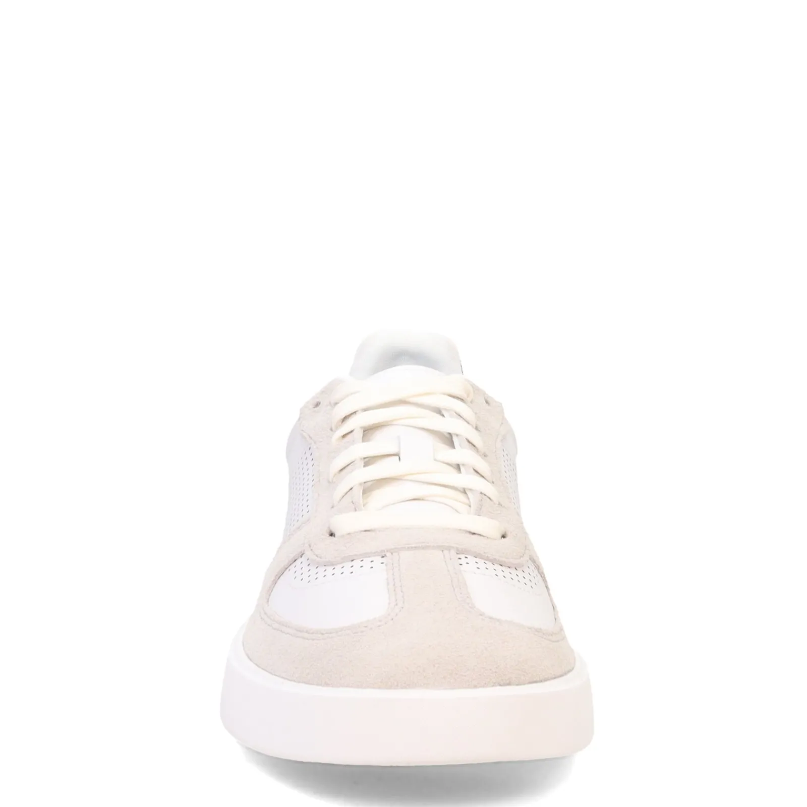 - Leather and suede uppers in a low top sneaker design with perf accents for a sporty look