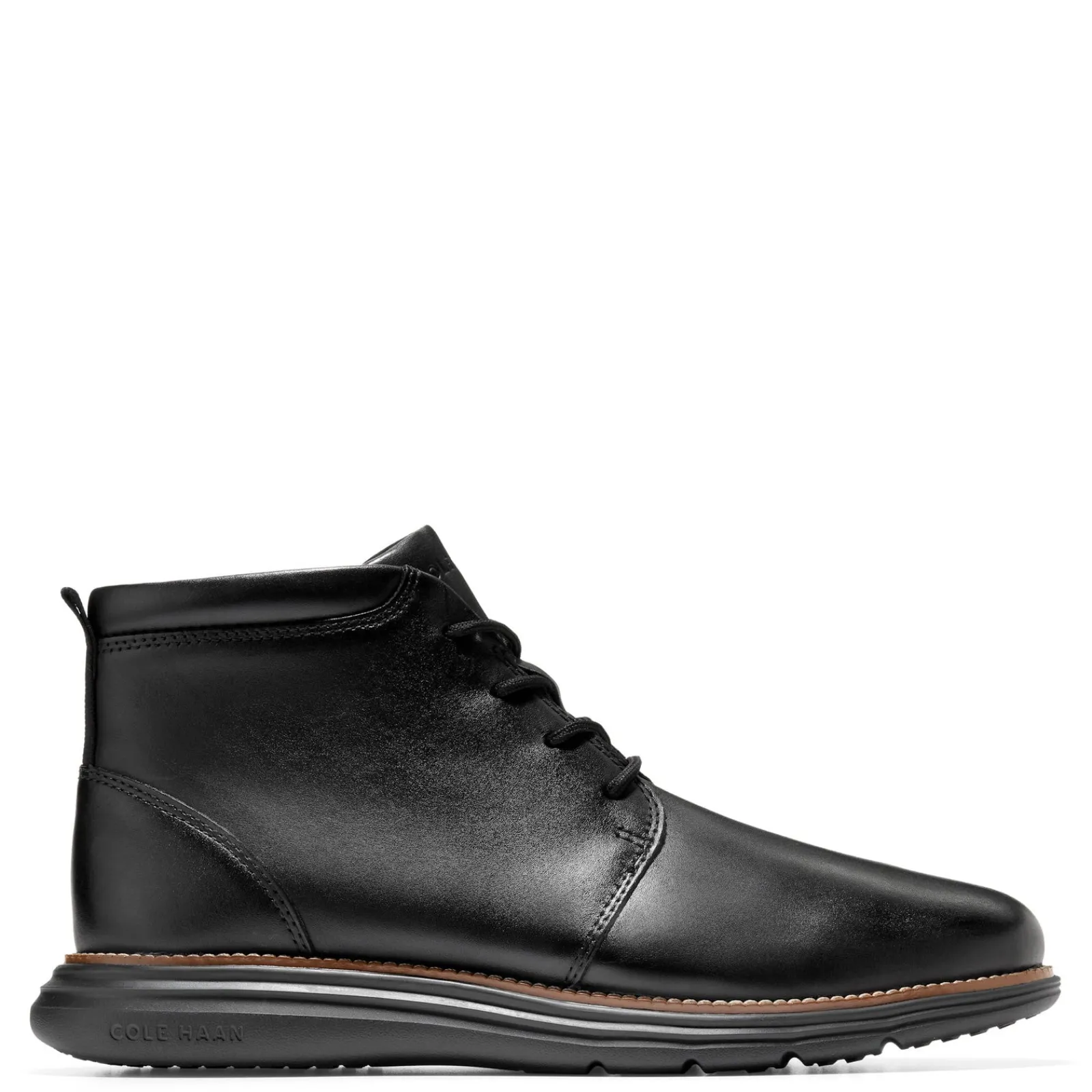 Stand out from the crowd with the Cole Haan Grand +Ultra Chukka boots. These stylish shoes are made of smooth leather and feature a lace up closure. The lining is made of textile and leather while the insole is lightly cushioned and puts your feet at ease throughout the day