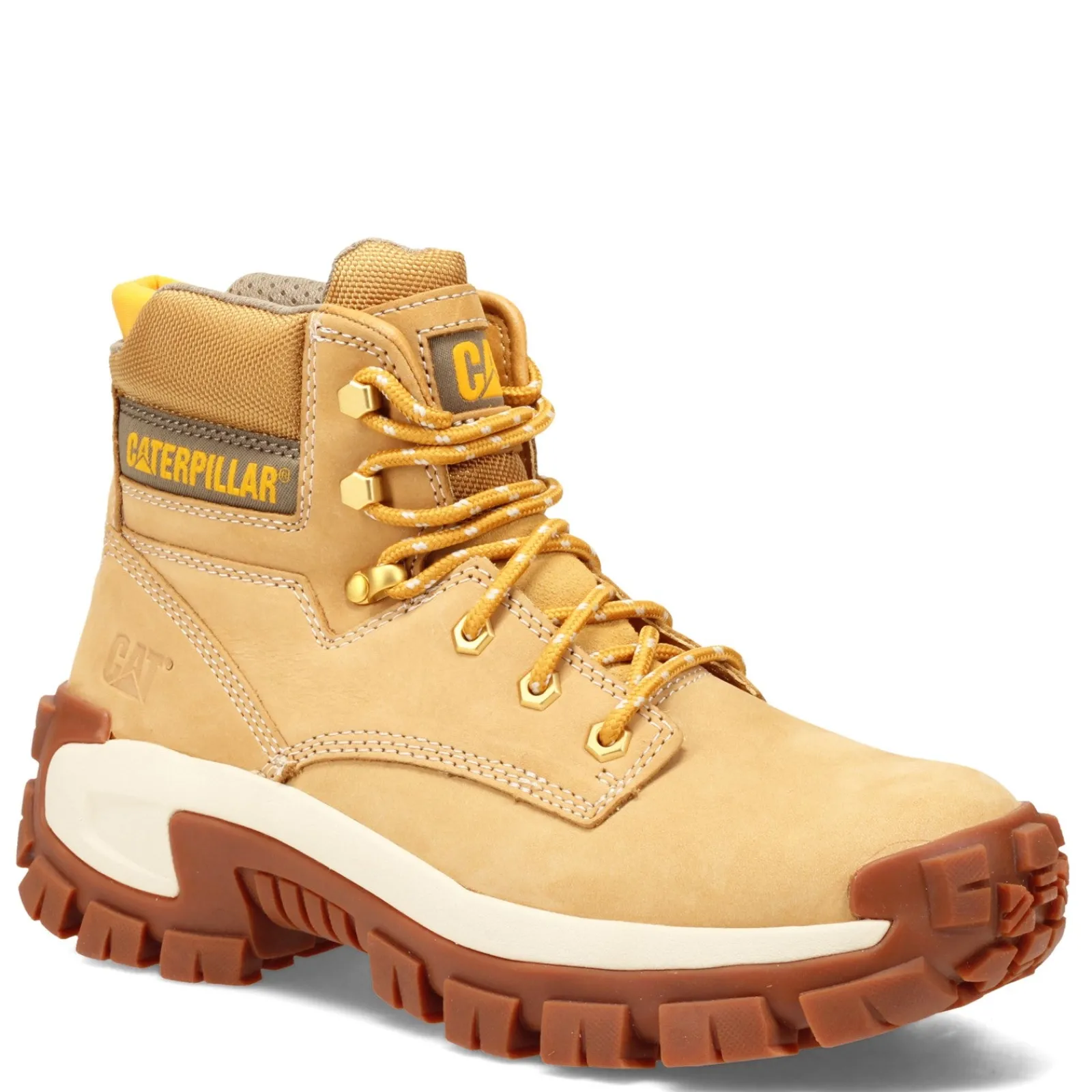 Men’s Caterpillar, Invader High Steel Toe Work Boot. This work boot offers a tough, chunky, hiker-style silhouette with a protective steel toe. The PU coated leather upper is soft and flexible and the Ease footbed will offer total cushion, shock absorption and energy return.