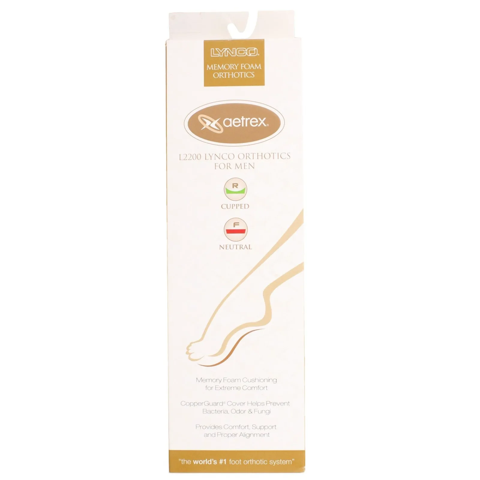 Men’s Lynco by Aetrex, Memory Foam Ortho Cup/Neutral. Designed to support most medium and high arches without adjustment.