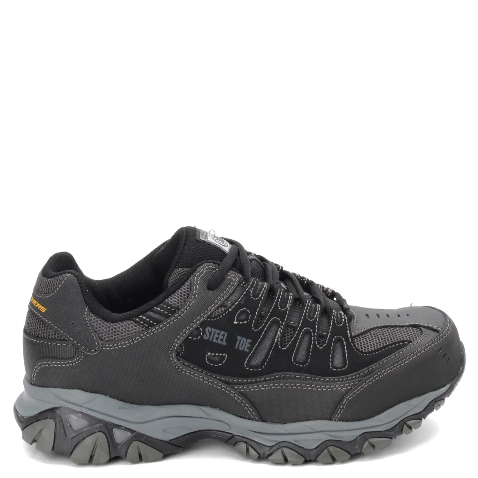 Men’s Skechers, Relaxed Fit: Cankton ST Work Shoe – Wide Width. Stay safe and comfortable in this sporty athletic style steel toe work sneaker. Part of the Relaxed Fit series, this memory foam cushioned sneaker will keep your workday going smoothly.