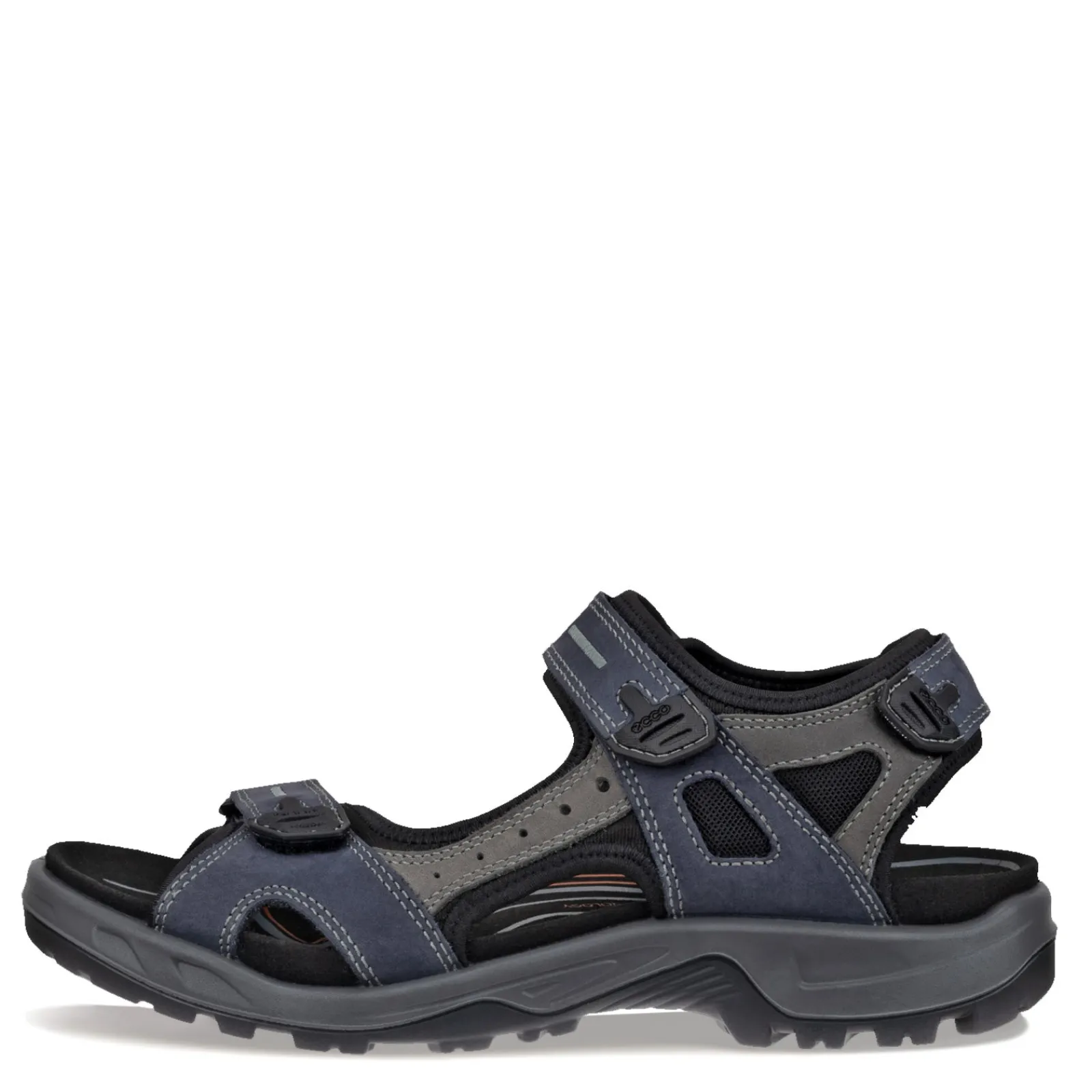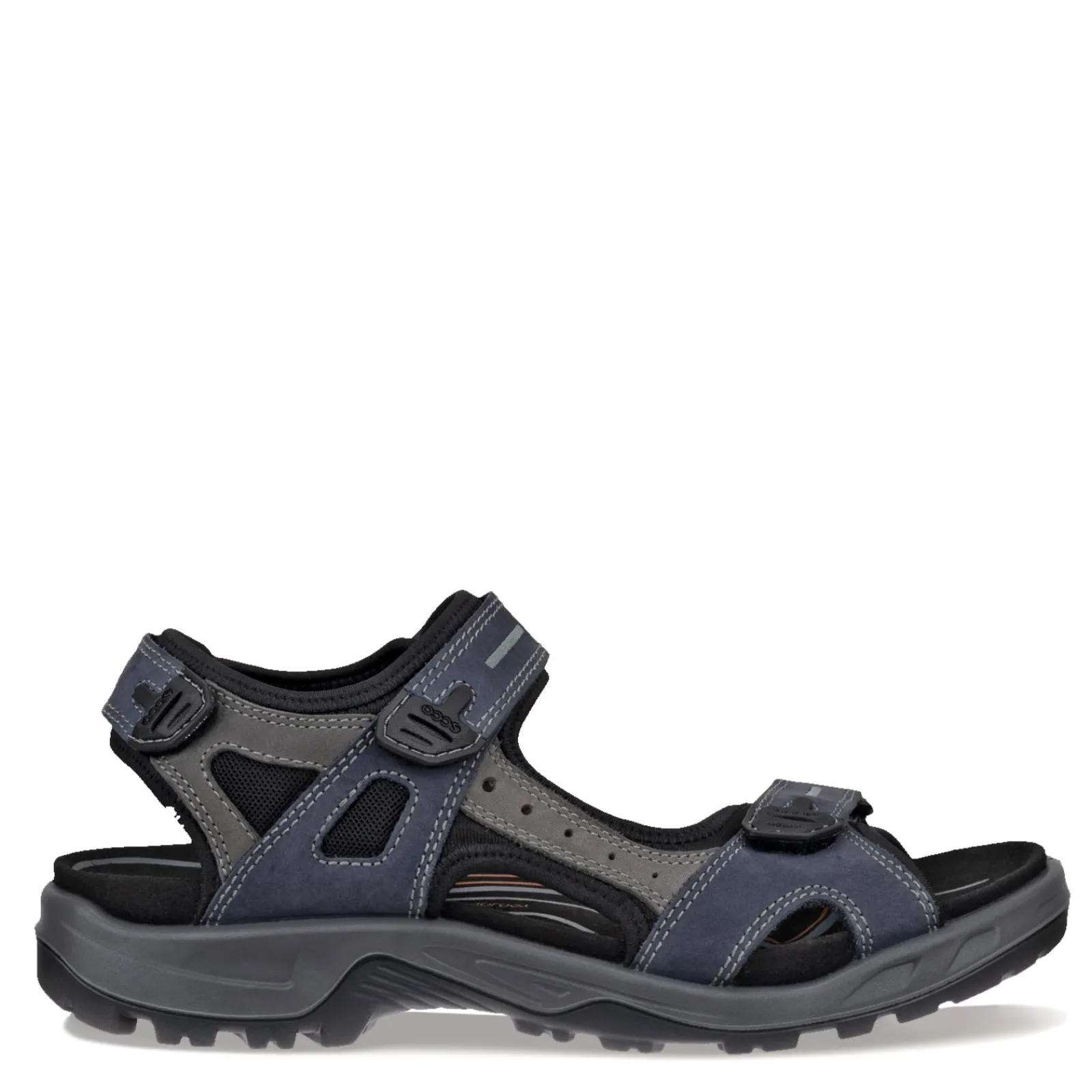 Men’s Ecco, Yucatan Sandal. Explore new trails in total comfort in the Yucatan adventure sandal. Three hook and loop adjustable straps allow for a secure fit, while the anatomically contoured footbed cradles your foot for all day wear.