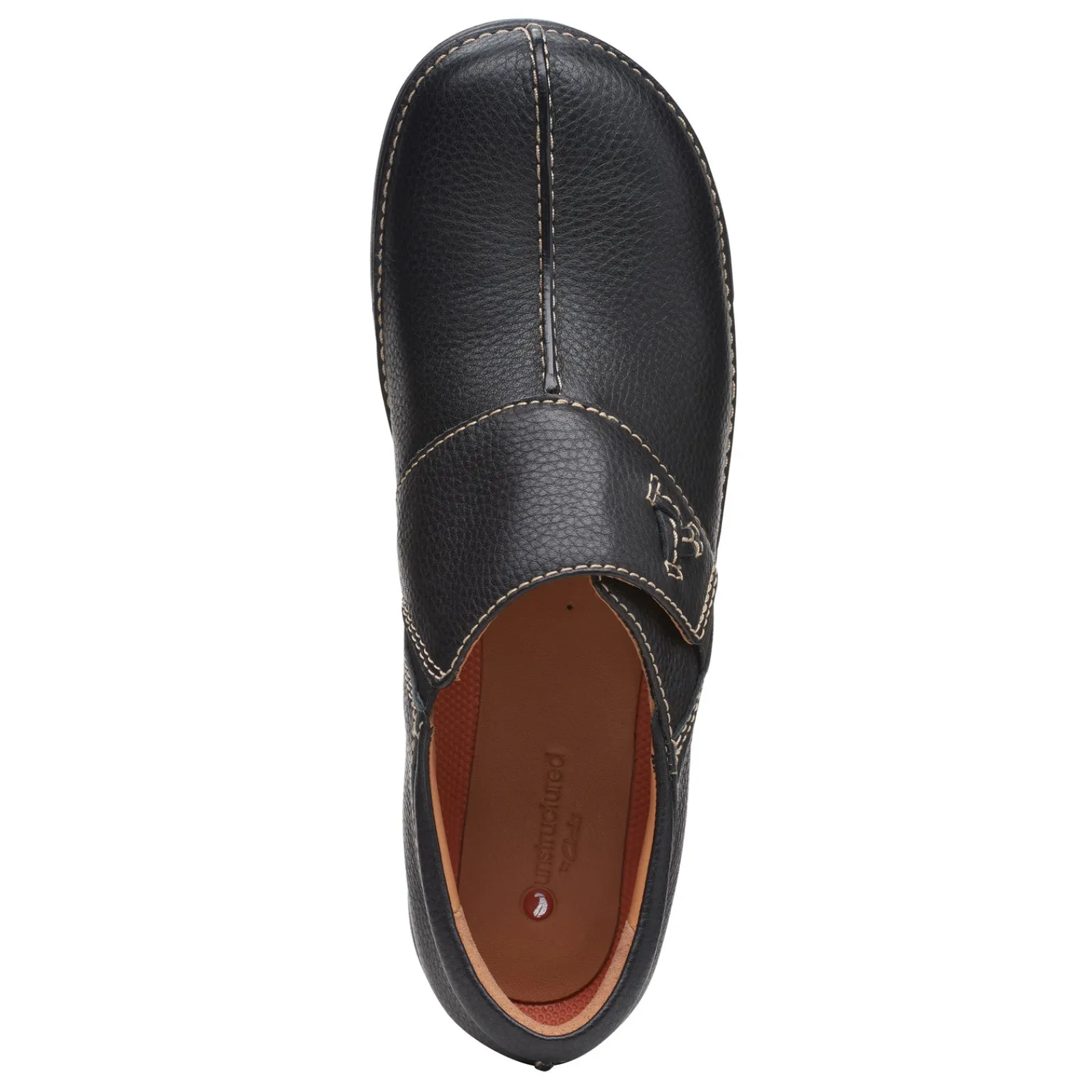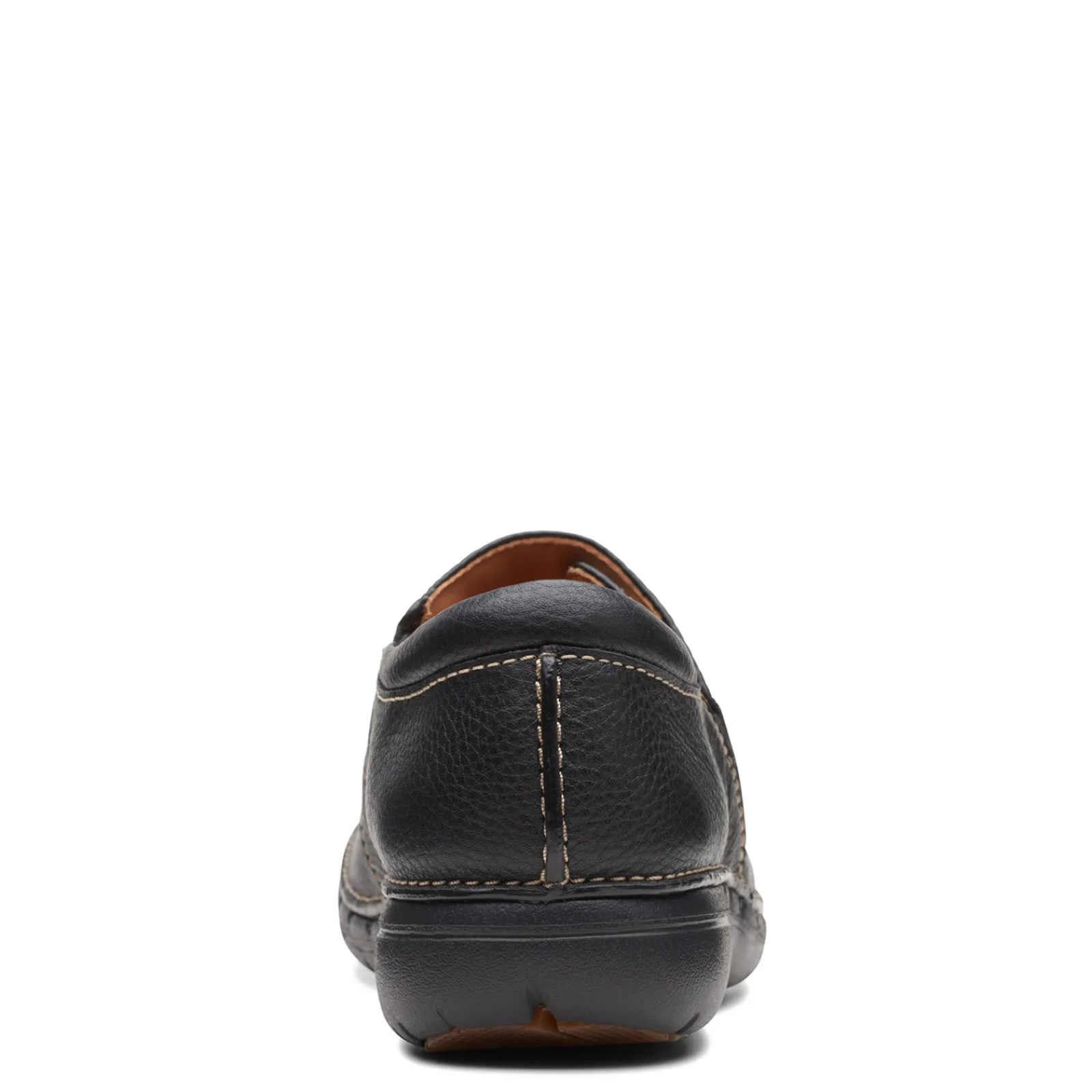 These Clarks Un Loop Ave slip-on shoes offer a premium look and feel in responsibly sourced leather. Crafted stitching gives this pair a heritage look, while its airy sole and leather lining keep steps light and free Responsibly sourced leather upper Slip on style with elastic goring for an easy on and off Breathable leather liningLeather covered soft foam footbed EVA outsole
