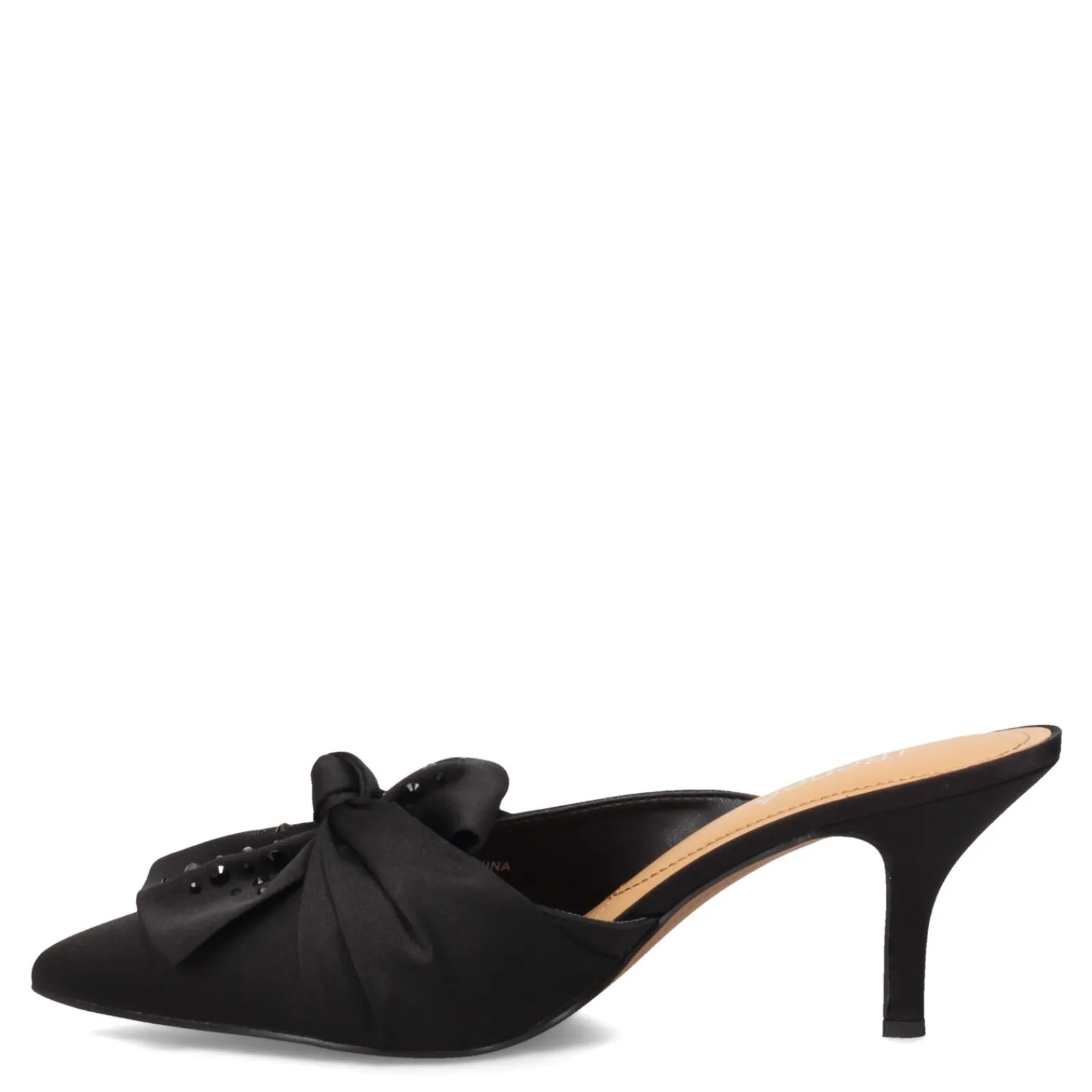 Women’s J Renee, Mianna Slide. These sleek dressy mules are perfect for that special occasion. The Mianna features a closed, pointed toe, a sleek stiletto heel and a luxurious satin fabric upper to compliment your dressy outfit.