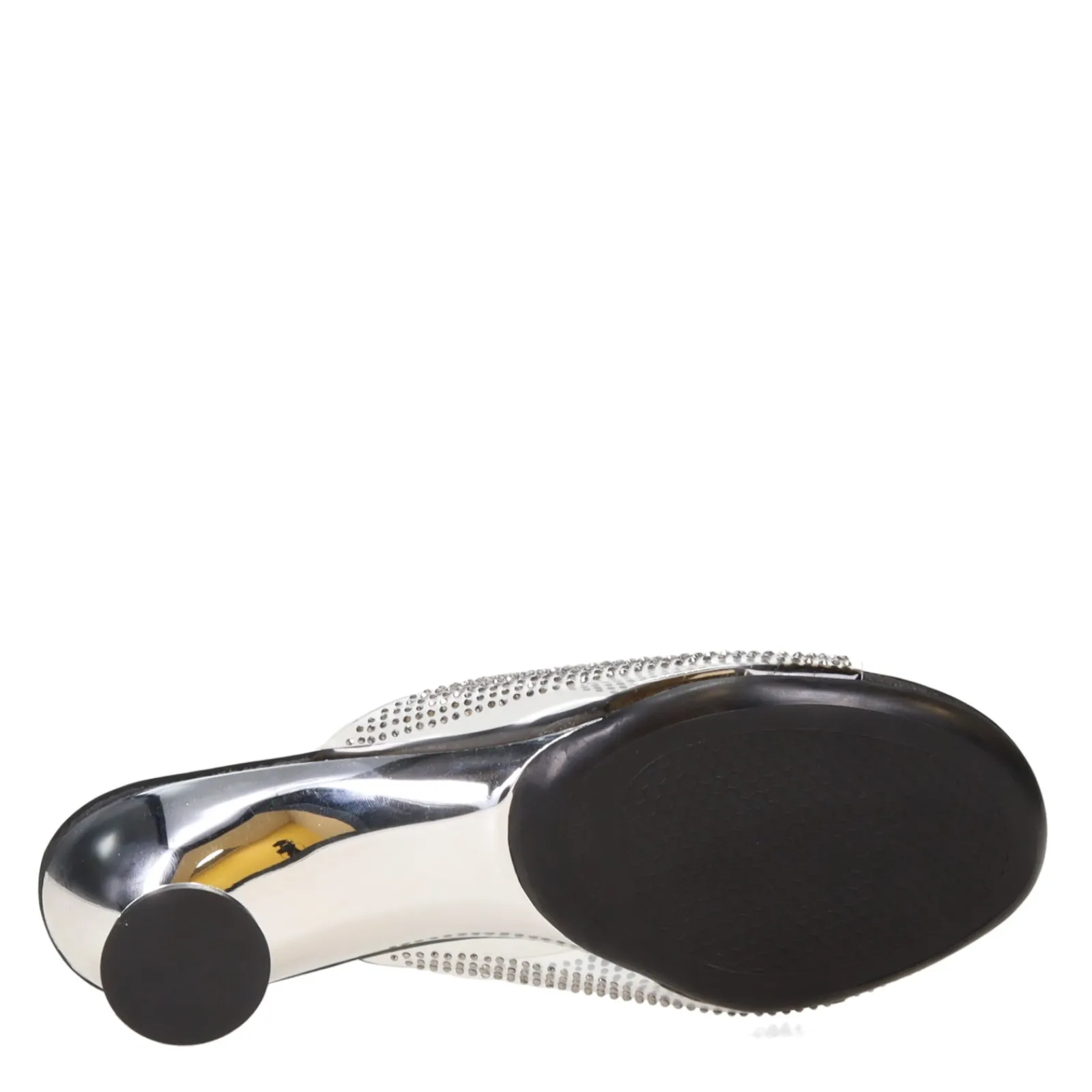 - Low sculpted metallic heel