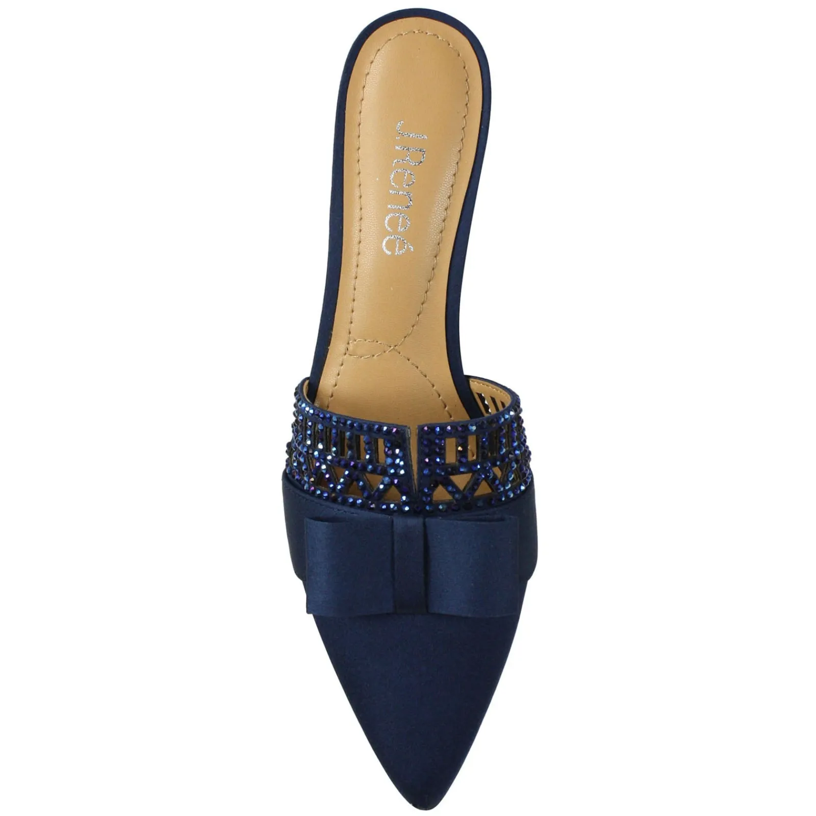 Women’s J Renee, Randa Mule. Choose this beautiful low heel fabric and rhinestone pointed toe mule style for your next dressy occasion. Perfect for weddings, special events or parties, this beautiful style will complete your look.