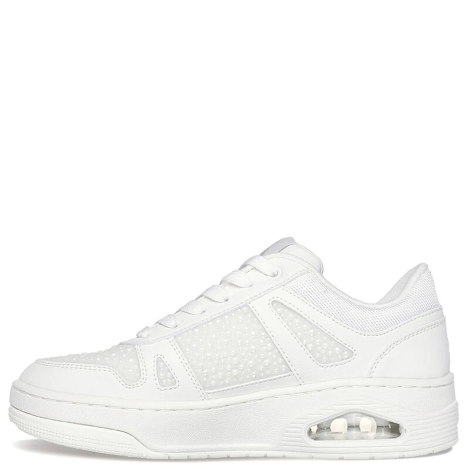 A timeless classic meets opulent luxury with the Skechers Street Uno Court – Opulent Pearls. This stylish court sneaker showcases a duraleather upper adorned with faux ‘Pearl and Caviar’ beading, paired with a Skechers Air-Cooled Memory Foam insole and a visible Skech-Air airbag midsole for unmatched comfort and flair