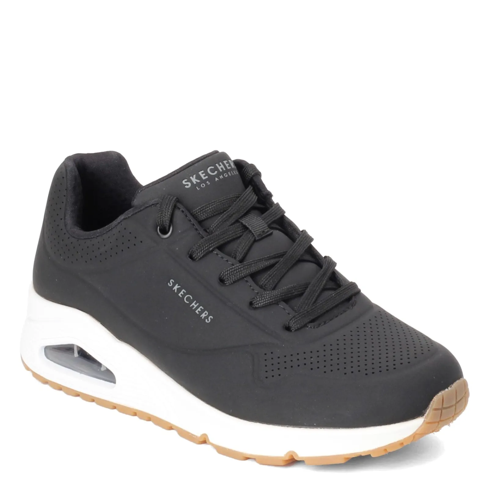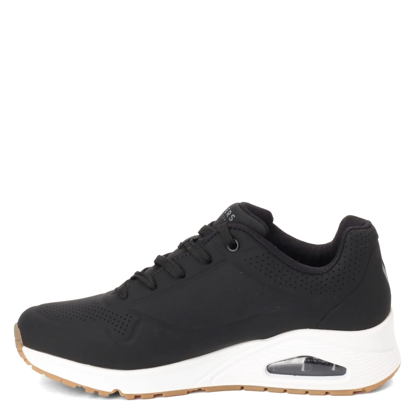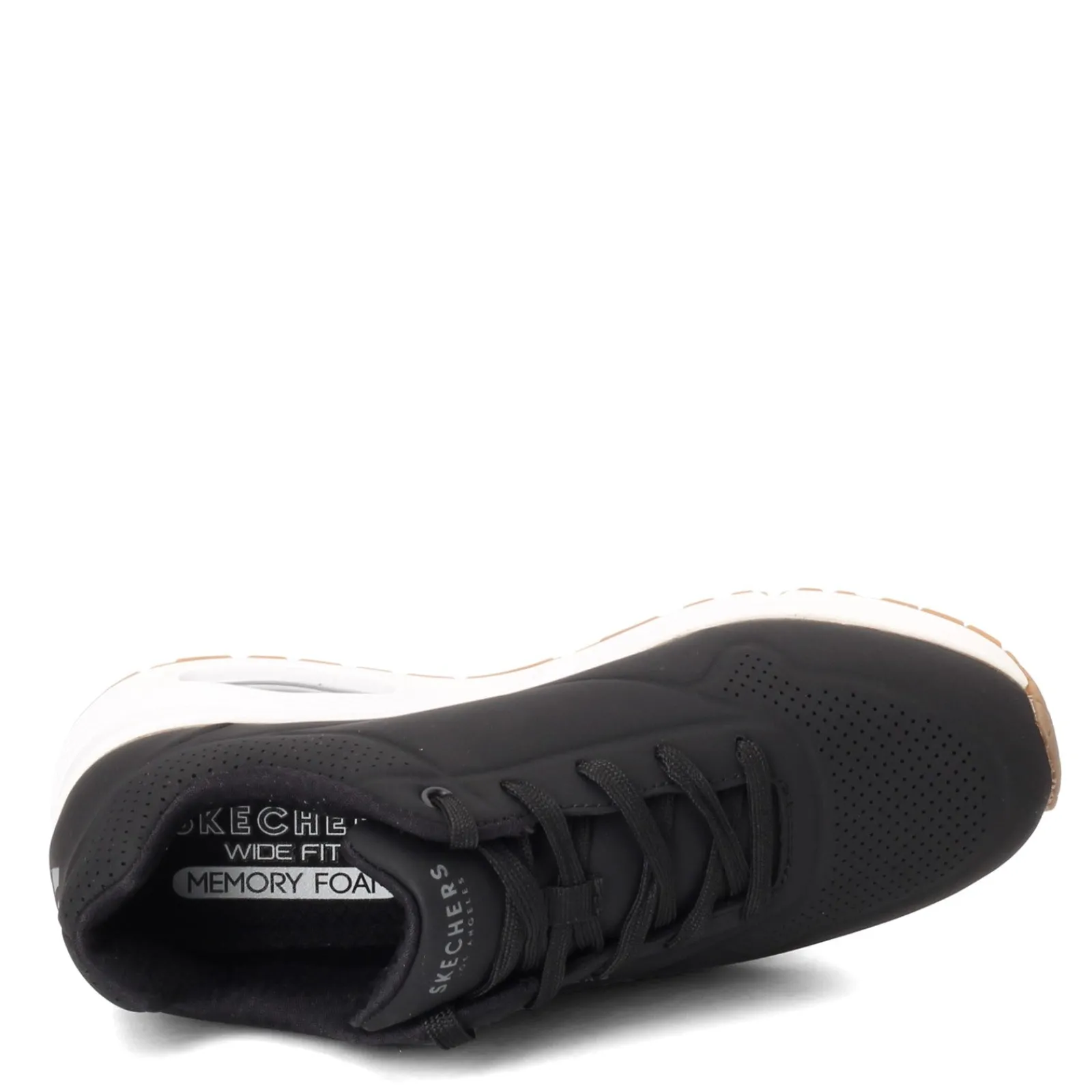 Women’s Skechers Street, Uno – Stand on Air Sneaker – Wide Width. You’ll love the cool and cushioned feel of this lightweight casual sneaker. The breathable perf uppers offer a cooling effect, while the visible air cushion in the heel and the memory foam footbed will support every step you take.