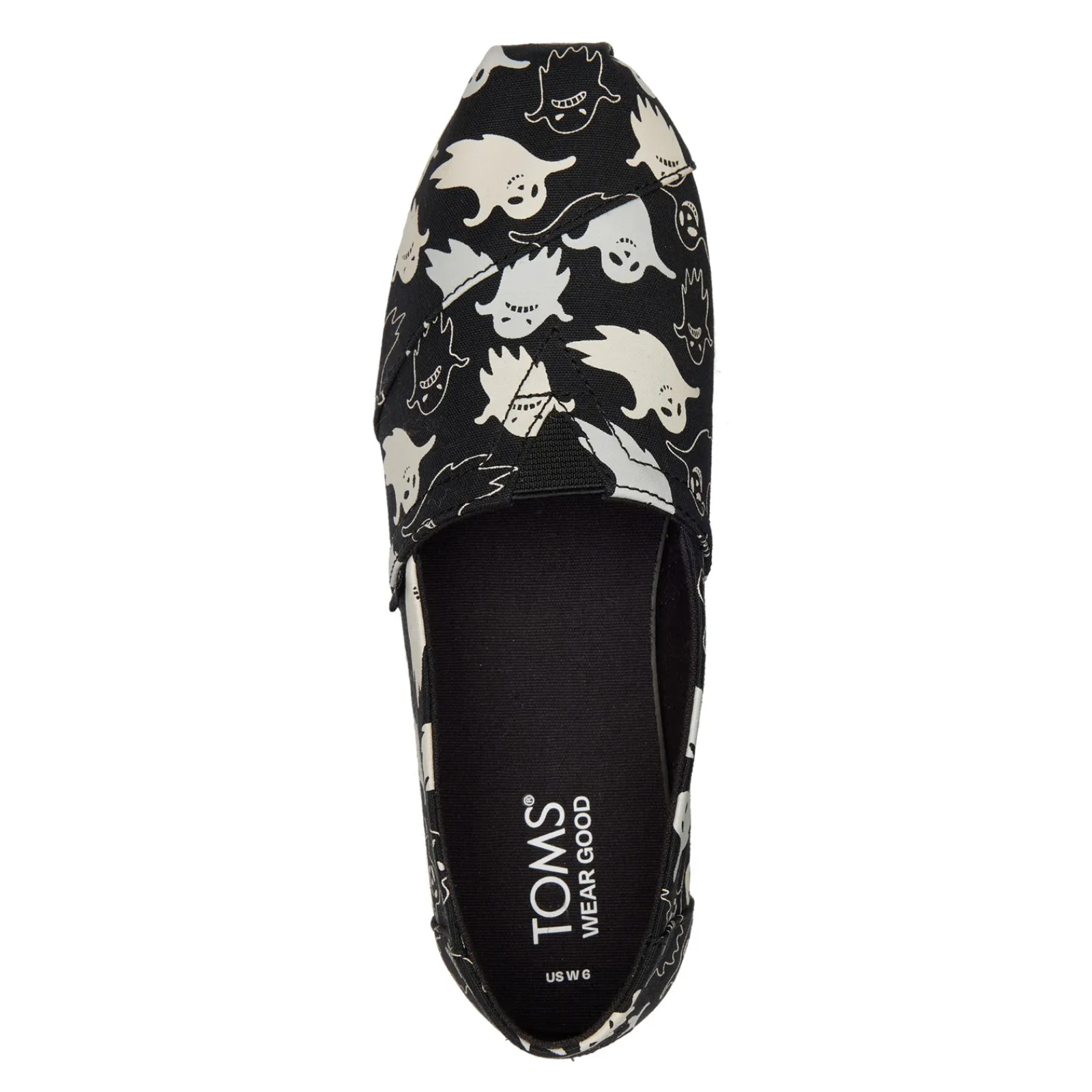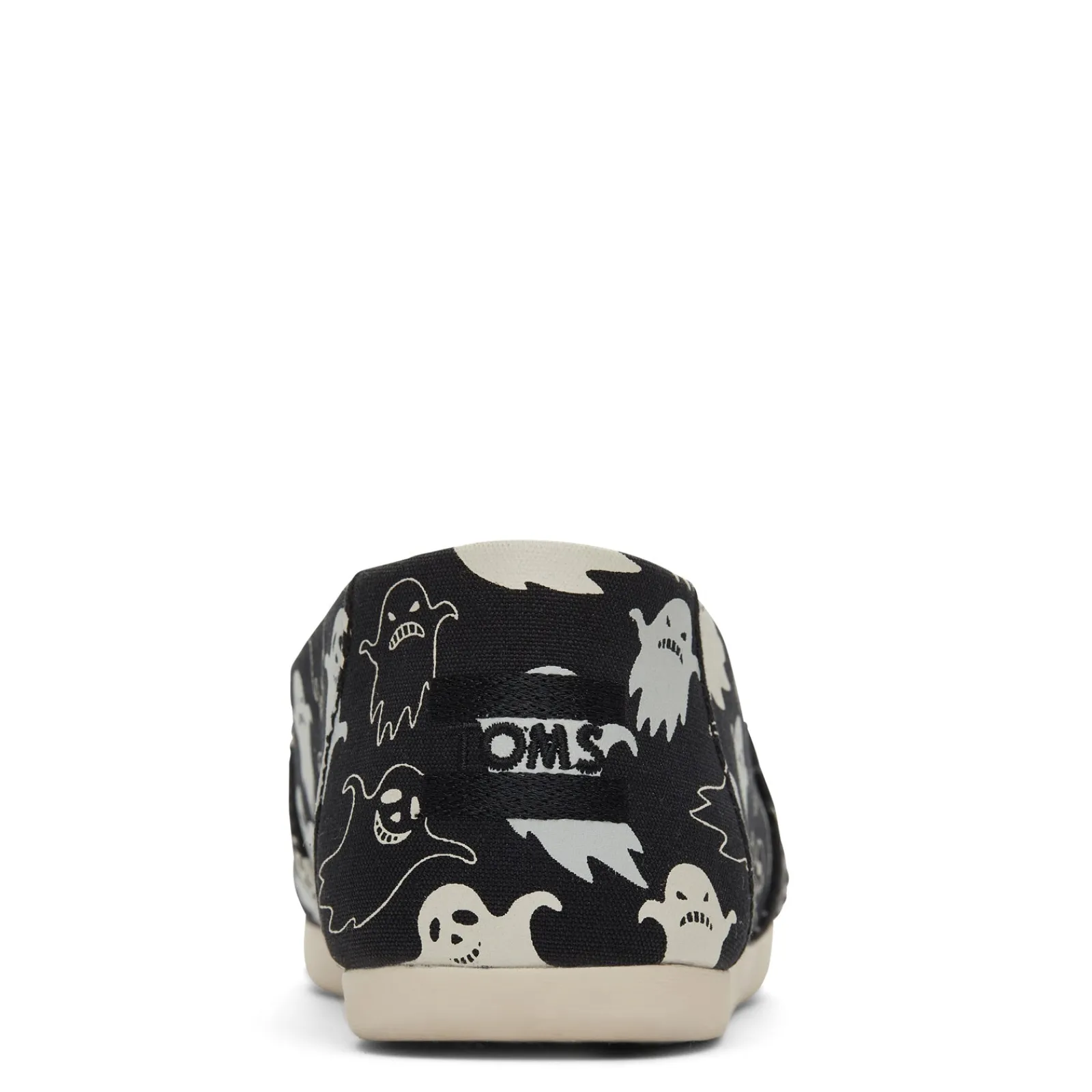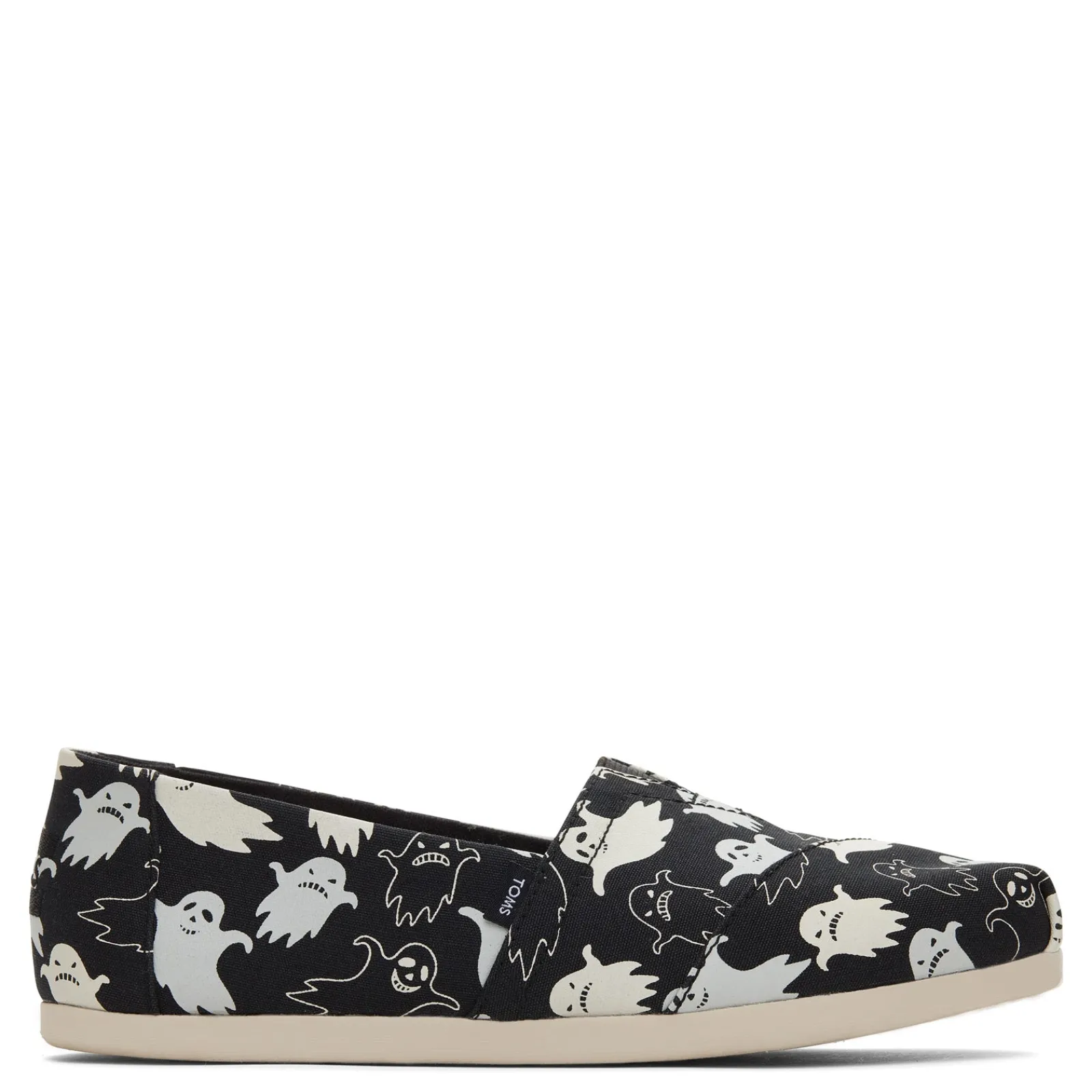 Oh-so-spooky Alpargata slip-ons. Perfect for Halloween, these espadrilles feature a classic TOMS silhouette and a fun ghost print that glows in the dark. Fitted with elastic gore and cushy CloudBound insoles for easy entry and long-lasting comfort.