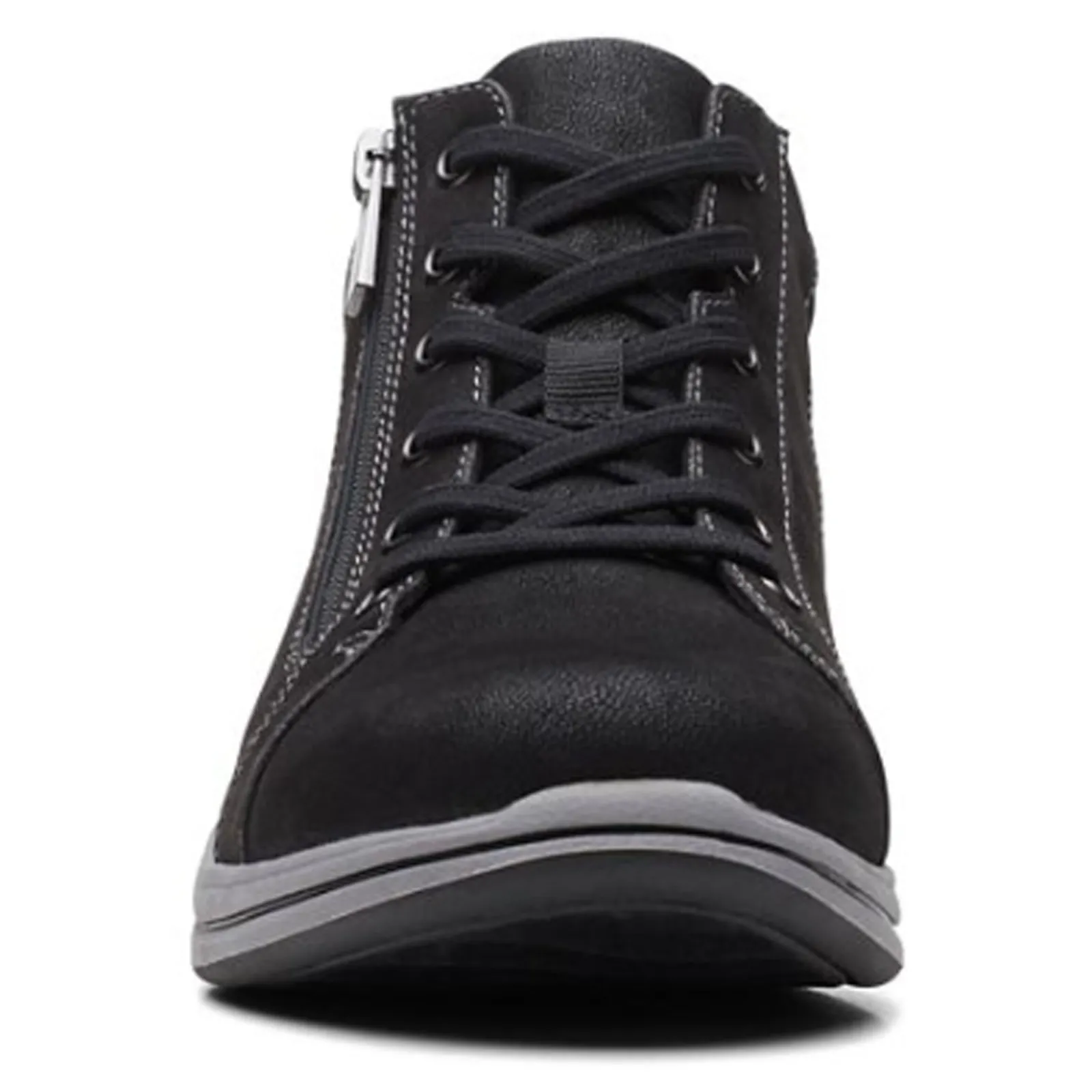Women’s Clarks, Breeze Glide Sneaker. Take your style to the next level with the Clarks Glide Sneaker! Crafted from premium faux leather and fabric and featuring a laced front panel, this sneaker is sure to be your next favorite wardrobe staple.