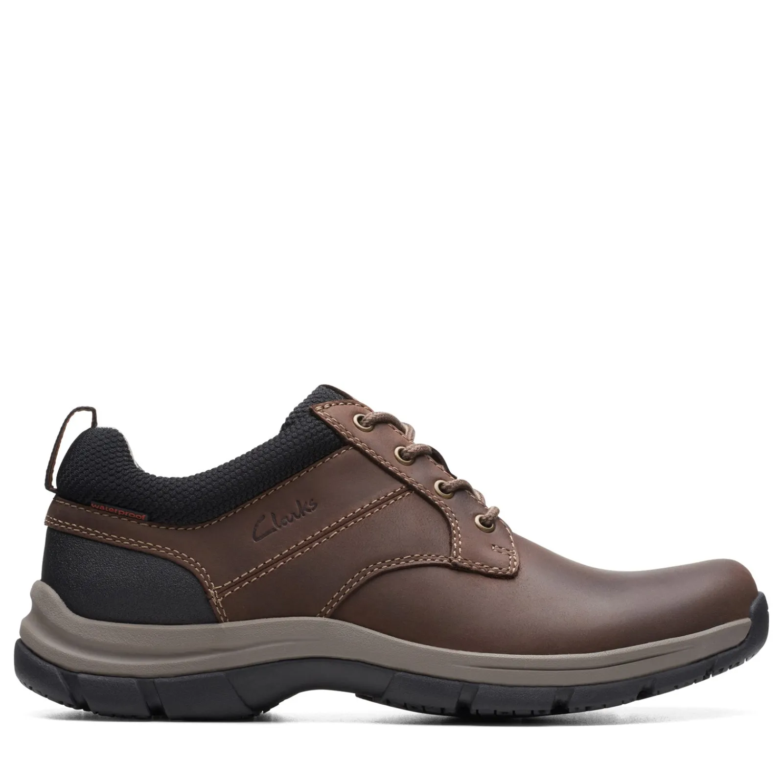 Unleash your inner explorer. Our sporty Walpath Low unites Clarks’ heritage aesthetic with a waterproof construction. Crafted with durable leather uppers and featuring a slip-resistant sole and mudguard, these shoes are ready for any adventure Waterproof leather upper Padded comfort mesh collar Classic lace-up styling Removable foam cushioned footbed for added comfort Lightweight and flexible EVA midsole Durable rubber slip-resistant outsole