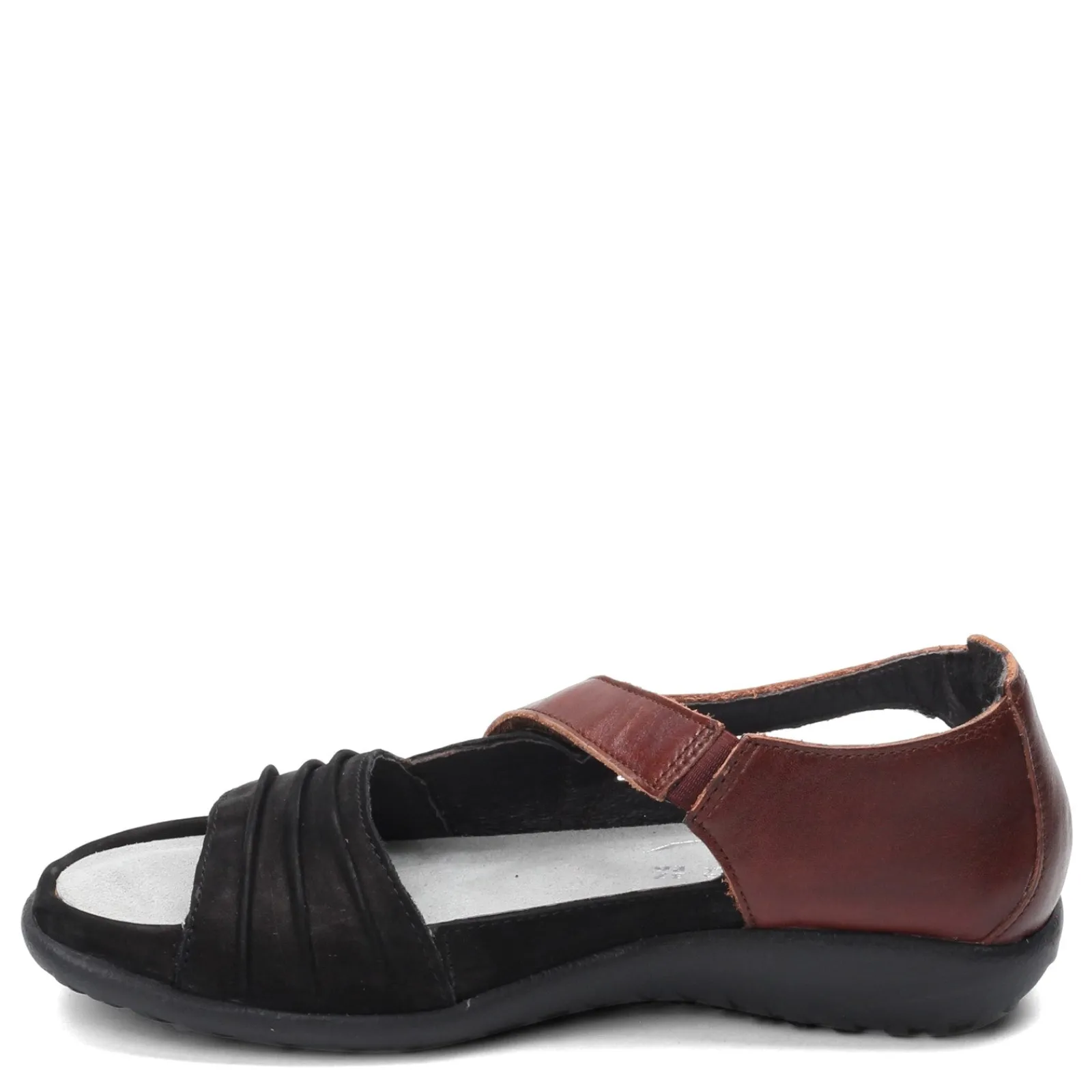 Women’s Naot, Papaki Sandal. Add a touch of style to any outfit with these low heel sandals. This foot flattering design features an asymmetrical strap, pleated accents and a closed back design.