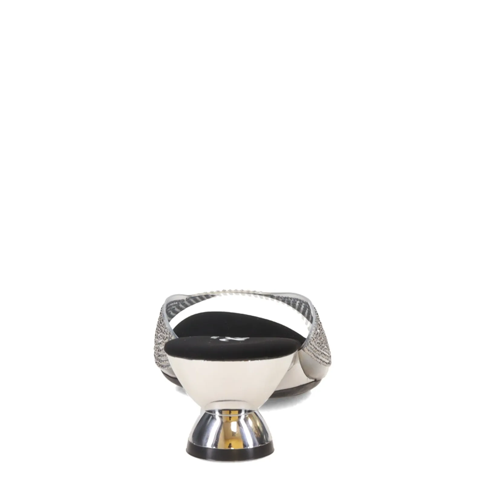 - Low sculpted metallic heel