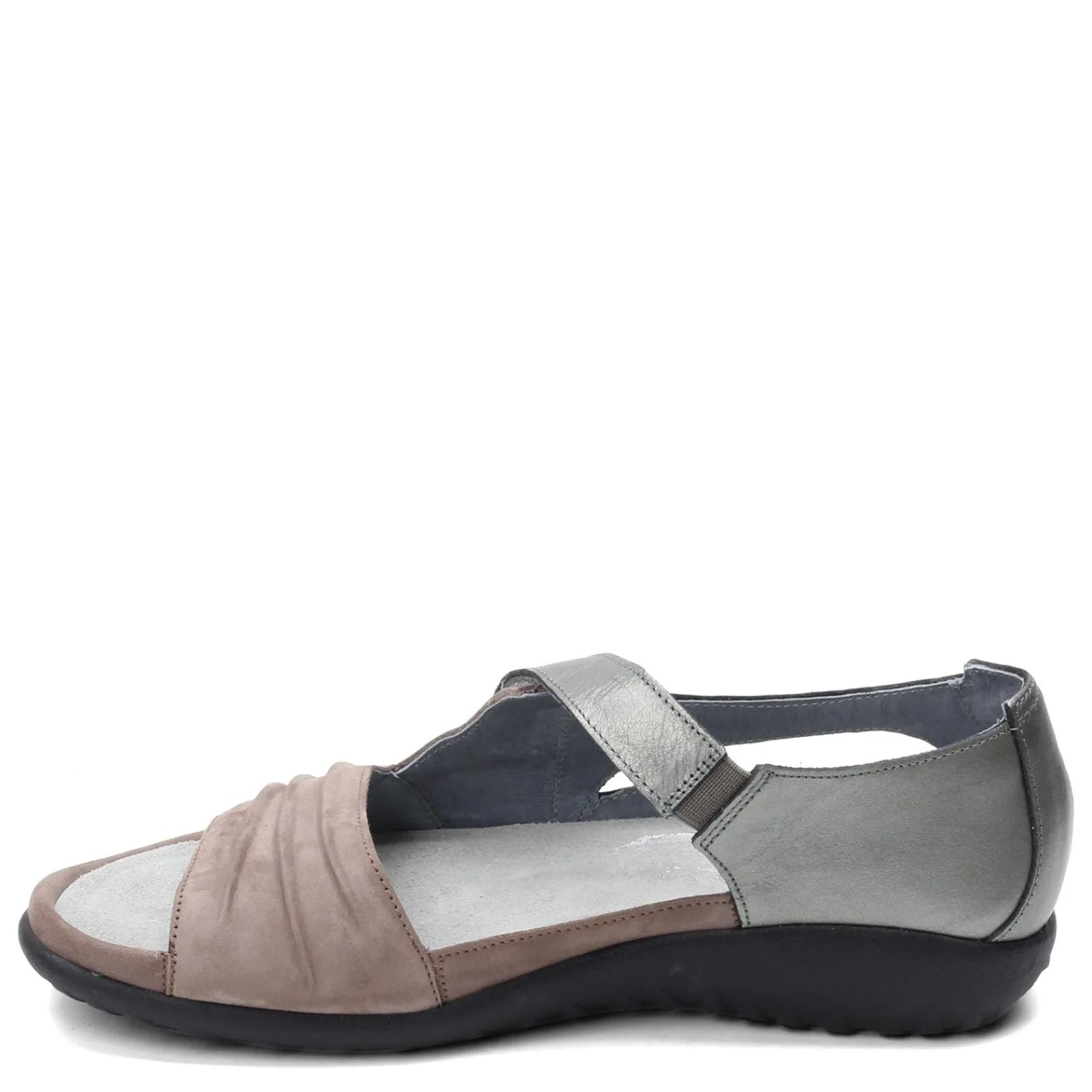 Women’s Naot, Papaki Sandal. Add a touch of style to any outfit with these low heel sandals. This foot flattering design features an asymmetrical strap, pleated accents and a closed back design.