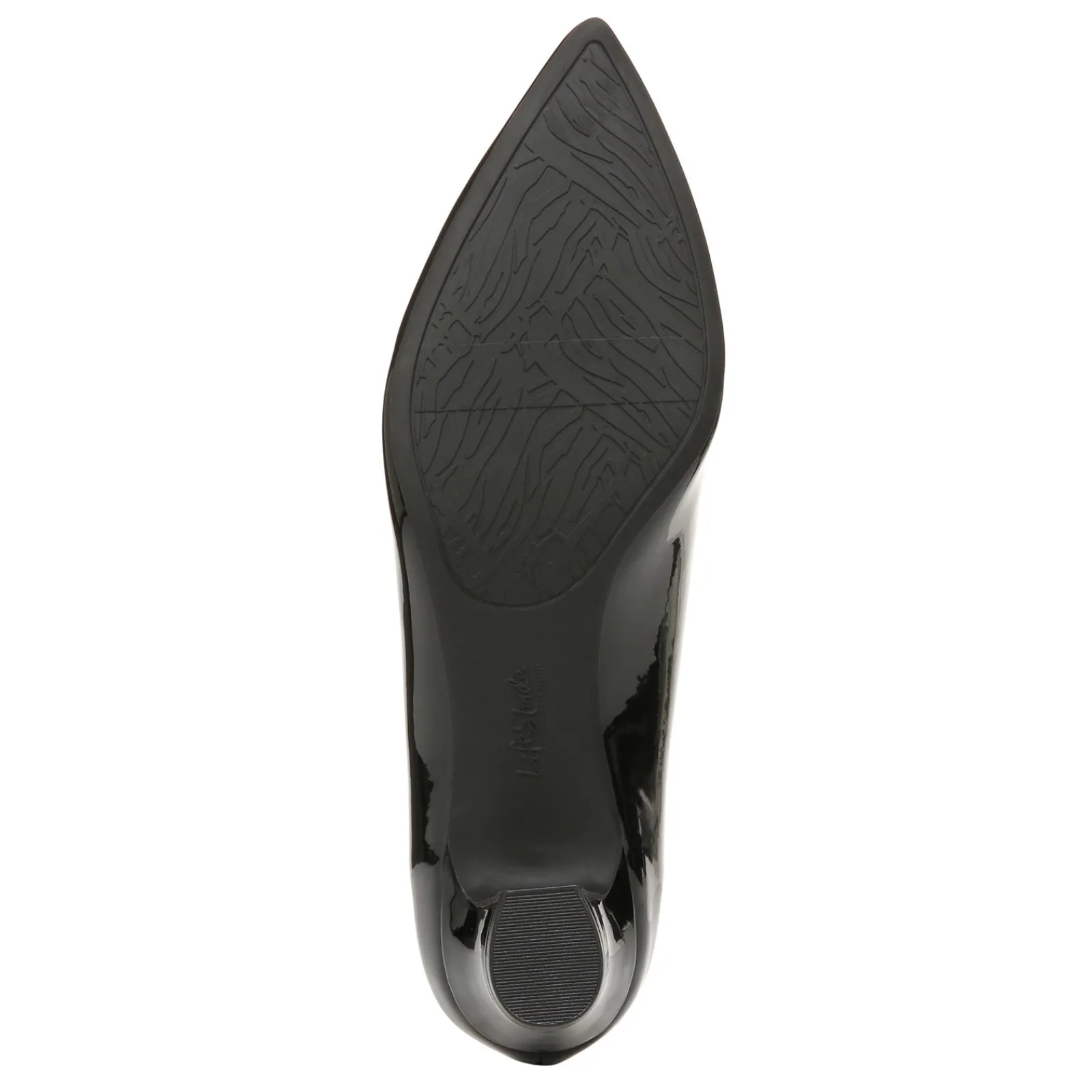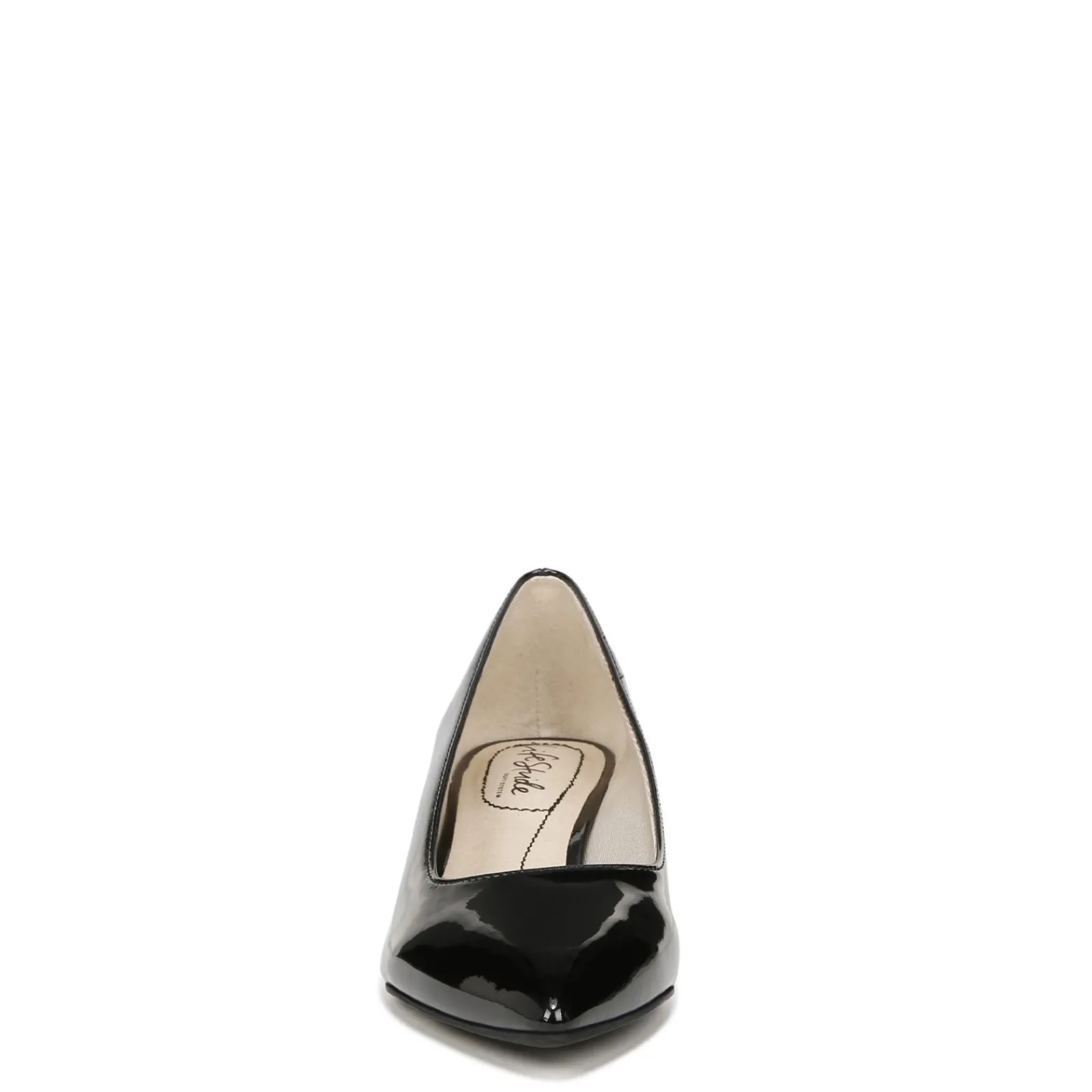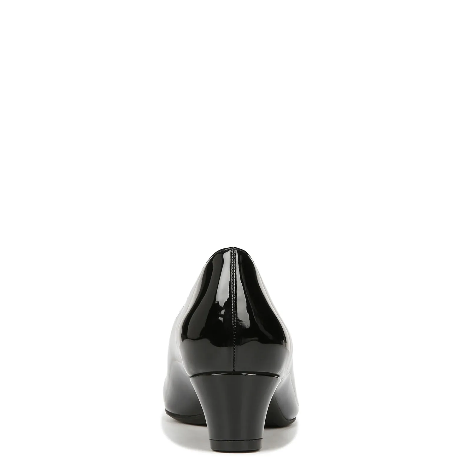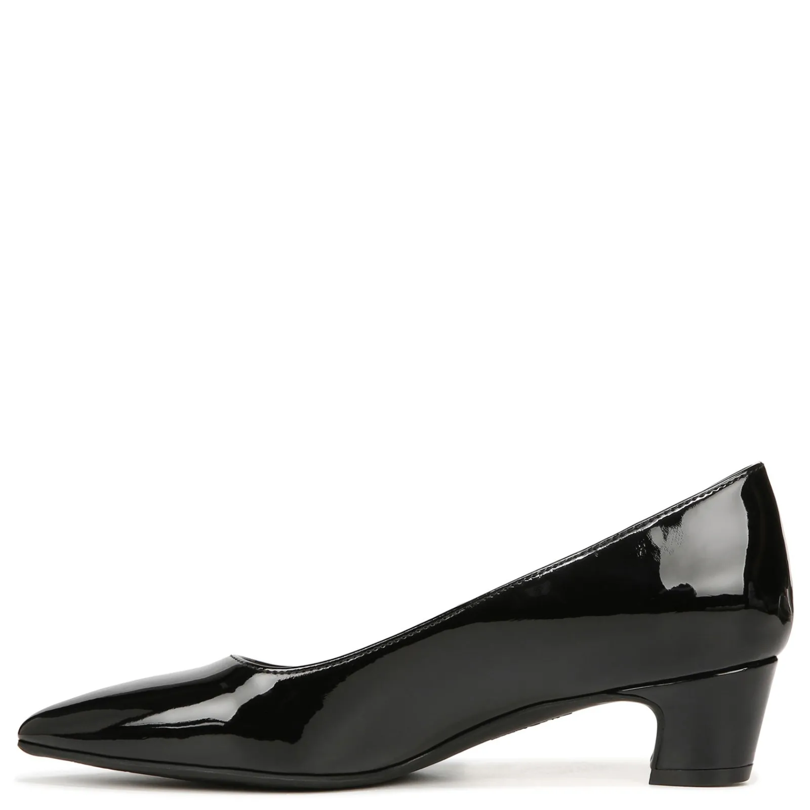 - Faux leather uppers in a low heel pump style