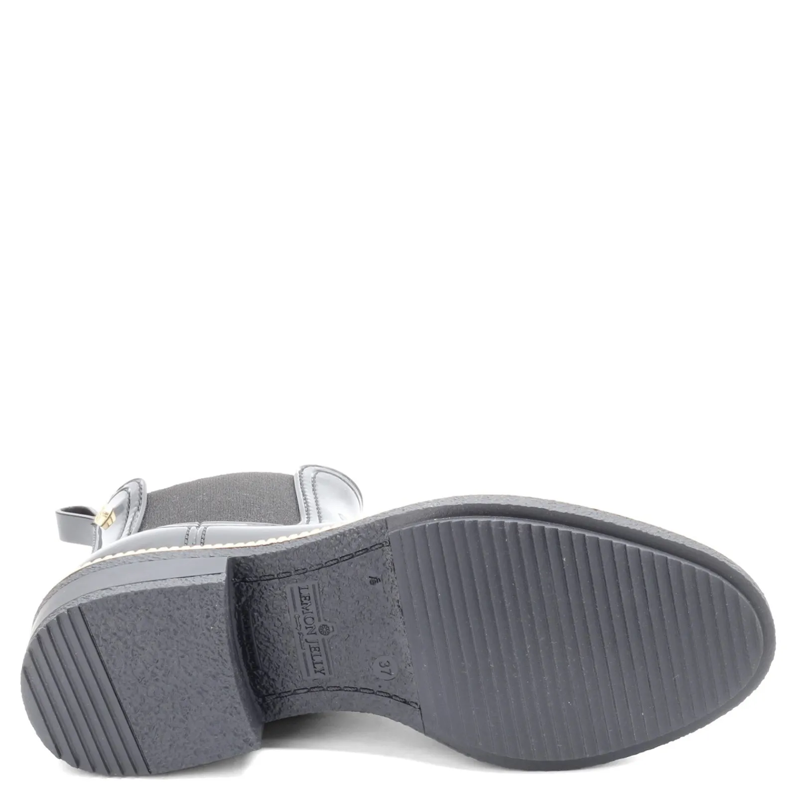 - Manmade uppers with glossy finishing, metallic niquel-free rivet and Lemon Jelly logo