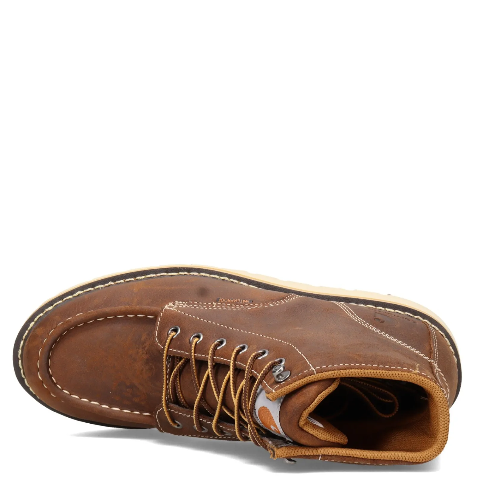 Men’s Carhartt, 6 Inch Waterproof Wedge Work Boot. Built to withstand long work days, this 6 inch wedge boot is made of premium leather and designed with a moisture-wicking FastDry lining to keep you comfortable even on the toughest jobsite. They also come with a well-cushioned insole that will keep you steady on your feet with less aches and pains.