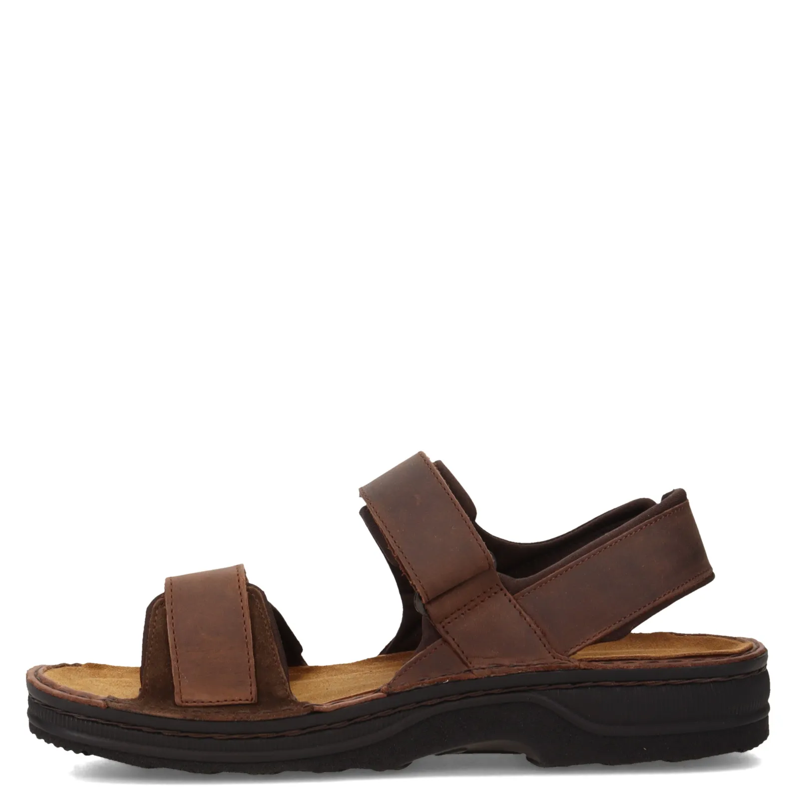 Men’s Naot, Arthur Sandal. The Men’s Arthur sandal by Naot is a fully adjustable sports sandal with three hookand loop straps. The removable, anatomic cork & latex footbed is wrapped in pampering suede and molds to the shape of the foot with wear, providing all day comfort.