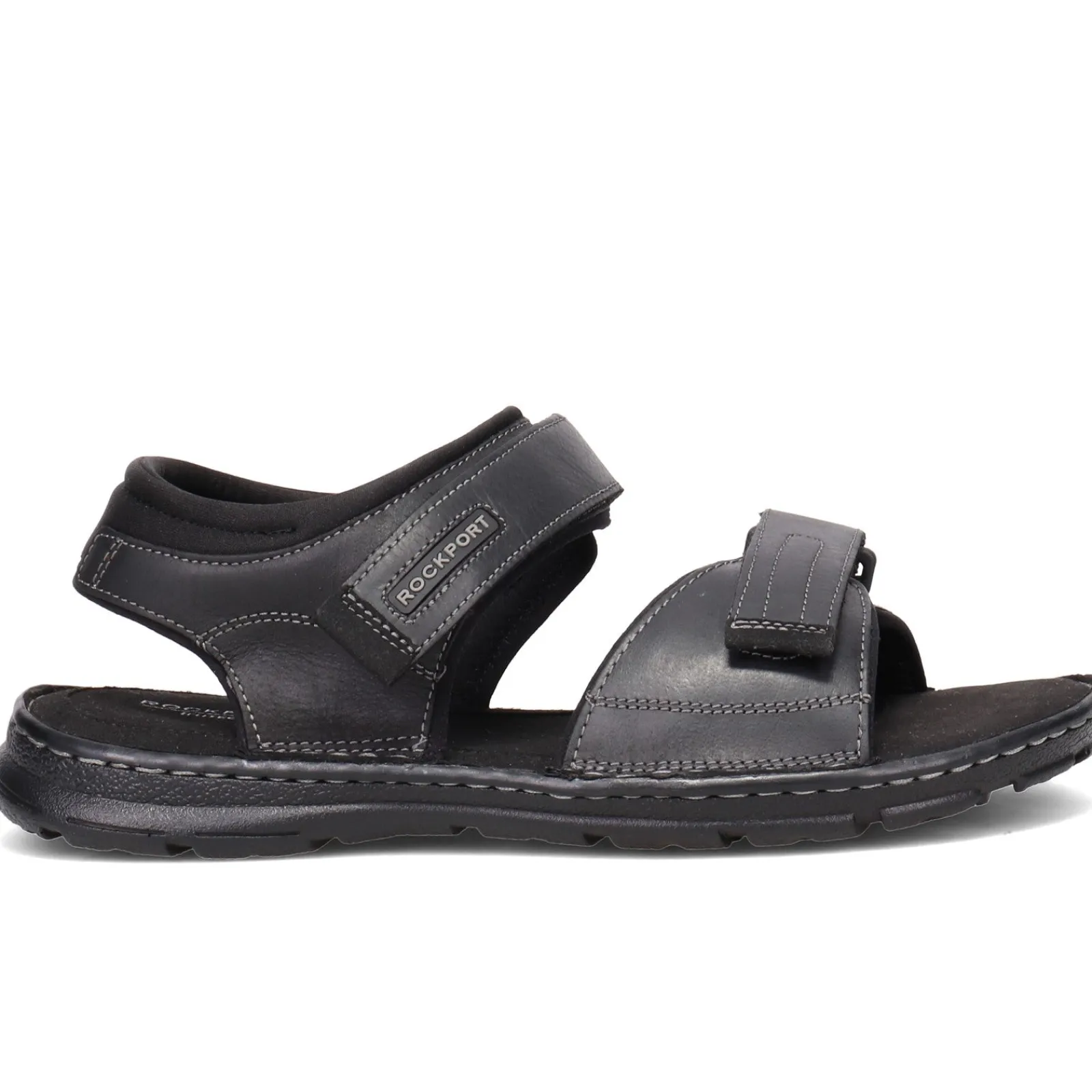 Men’s Rockport, Darwyn Quarter Strap Sandal. This easy going, no-fuss sandal helps to reduce foot fatigue. The quarter strap design offers a secure fit with dual adjustable hook and loop straps.
