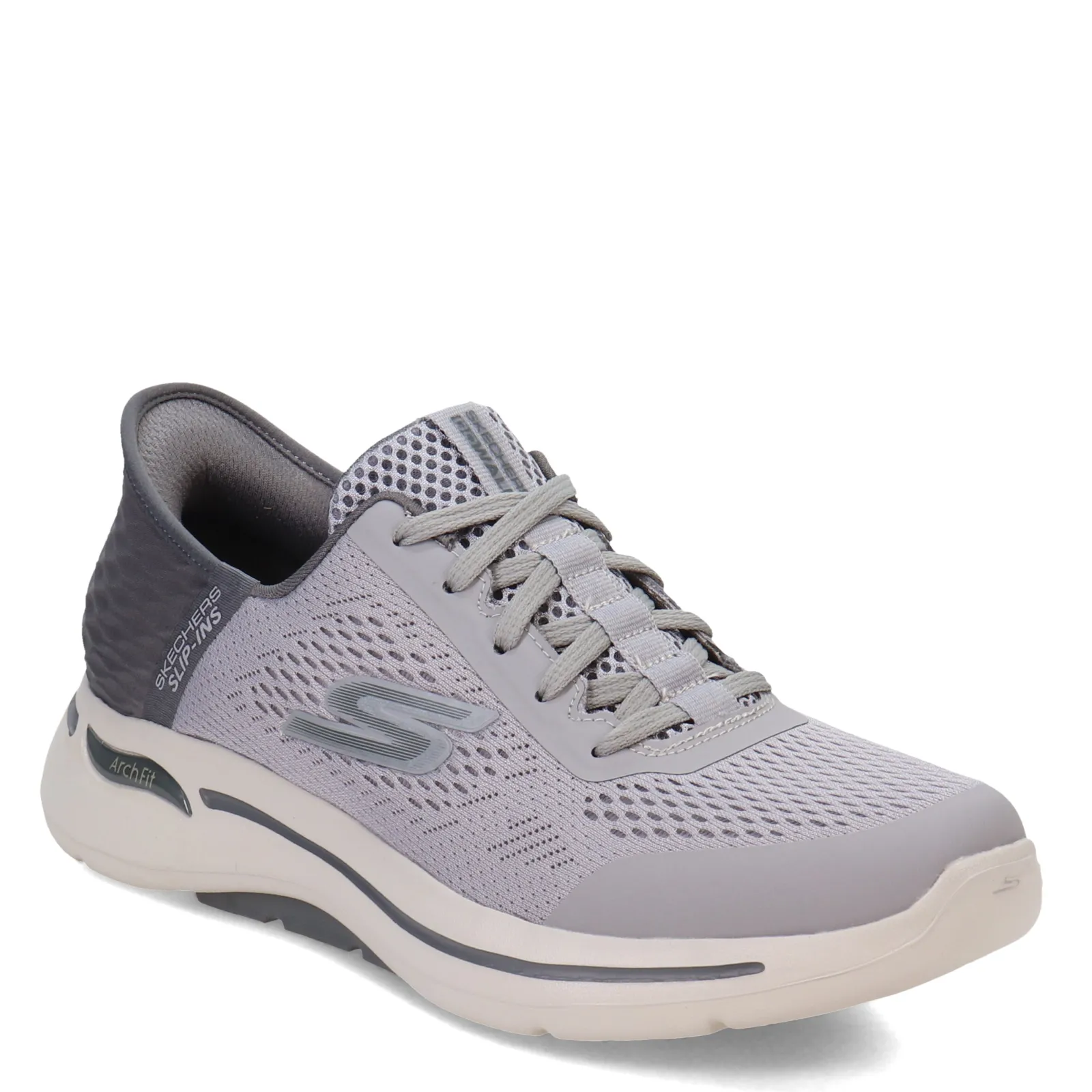 Men’s Skechers, GO Walk Arch Fit Slip-Ins – Simplicity Walking Shoe. The GO Walk Arch Fit shoes are made with Skechers’ Hands Free Slip-ins technology, which features a bungee lace up front combined with a tongue pull tab and a Heel Pillow collar for an easy on and off with added support.