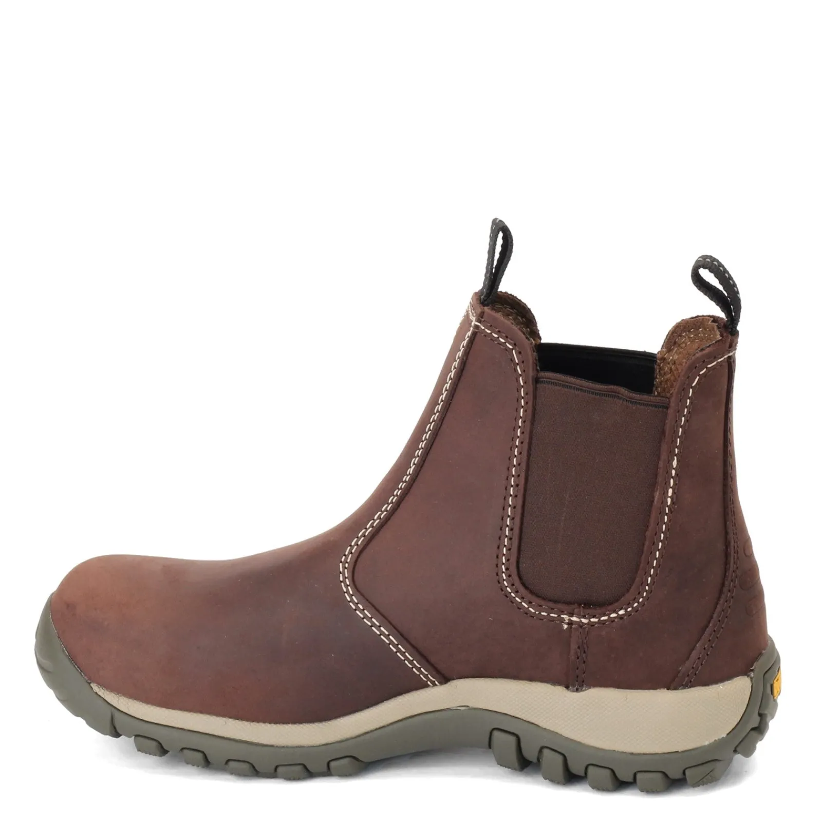 - Leather and stretch uppers in a pull on style boot
