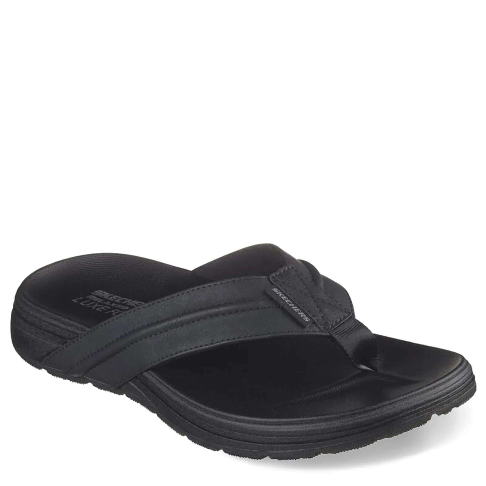 Embrace beach-ready comfort with Skechers Relaxed Fit: Patino – Marlee men’s flip flops, boasting a relaxed design and a contoured Luxe Foam footbed for all-day comfort. Crafted with smooth vegan leather and featuring a casual thong sandal style, they offer both style and comfort for sunny days ahead.
