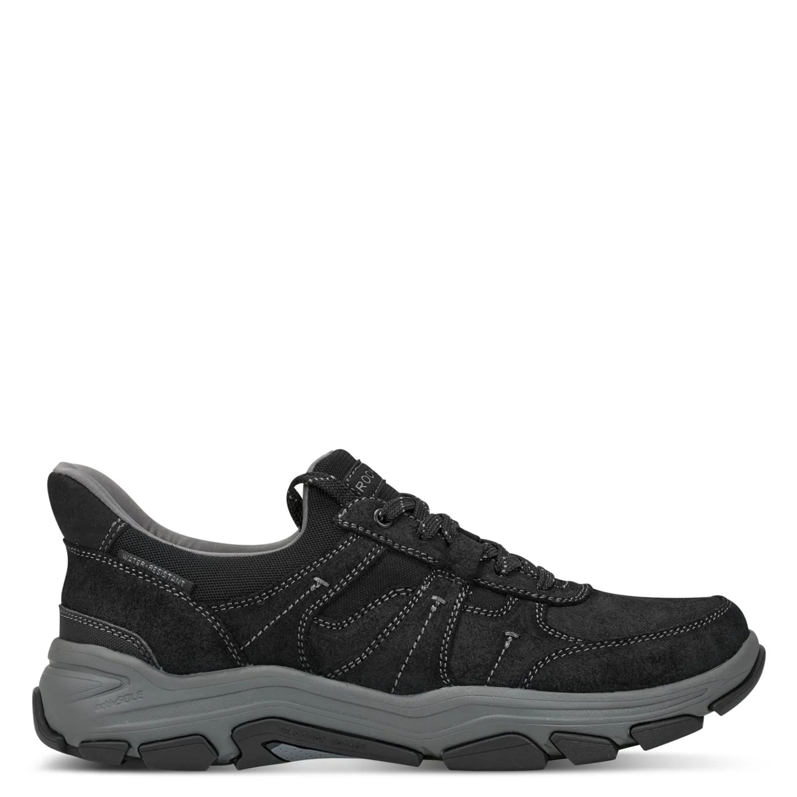 - Water resistant leather uppers with contrast stitching accents