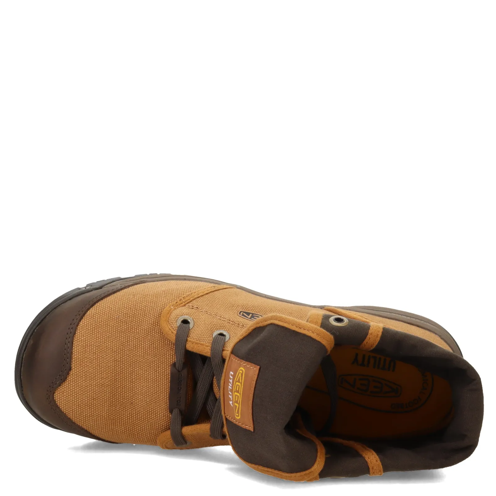Men’s KEEN Utility, Roswell Mid Carbon Fiber Toe Work Boot. The Roswell combines a smooth, breathable canvas upper with a fold-down collar and carbon-fiber toes to offer the support you need with a healthy dose of springy energy return. A triple-density polyurethane outsole molds to your feet over time to create a customized fit, providing comfort and support at all times.