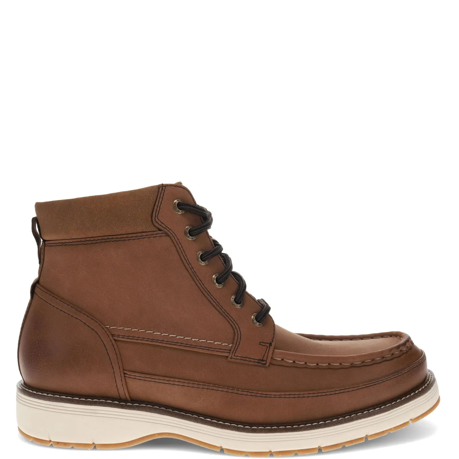 Stay sharp this fall in the Dockers Thames Moc Toe Boot, where timeless style meets all-day comfort. Featuring an easy-care faux leather upper, padded collar, and moisture-wicking EVA footbed, these boots offer a flexible synthetic outsole with traction control to keep you grounded no matter the adventure