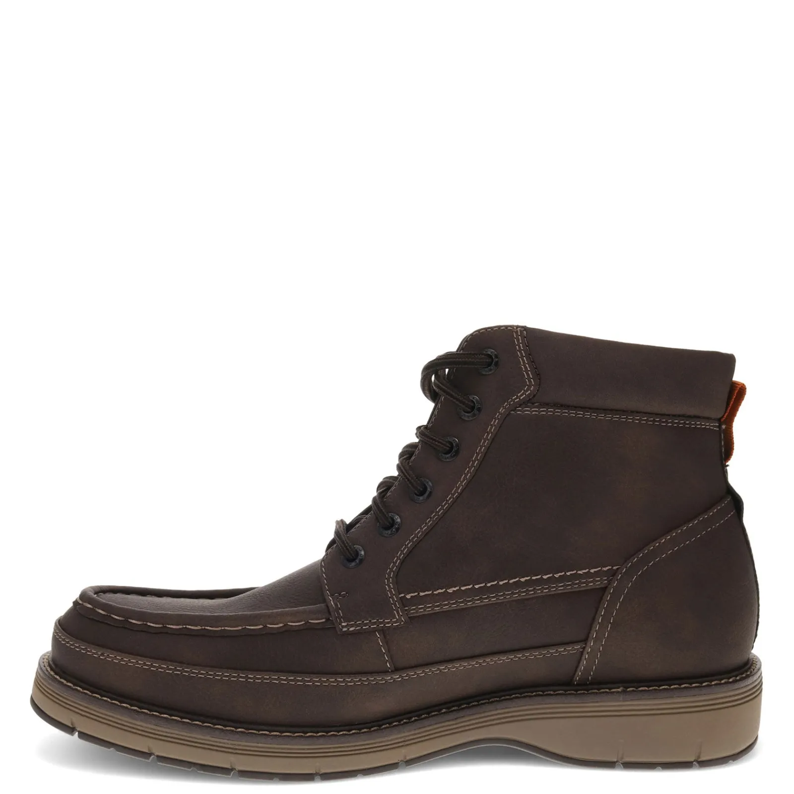 Stay sharp this fall in the Dockers Thames Moc Toe Boot, where timeless style meets all-day comfort. Featuring an easy-care faux leather upper, padded collar, and moisture-wicking EVA footbed, these boots offer a flexible synthetic outsole with traction control to keep you grounded no matter the adventure