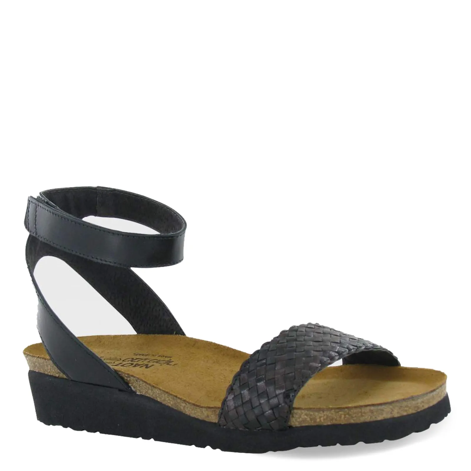 Women’s Naot, Abbie Sandal. Feel comfortable and look stylish in this casual sandal. The woven leather accent and ankle wrap make this the perfect style to wear with skirts or dresses .