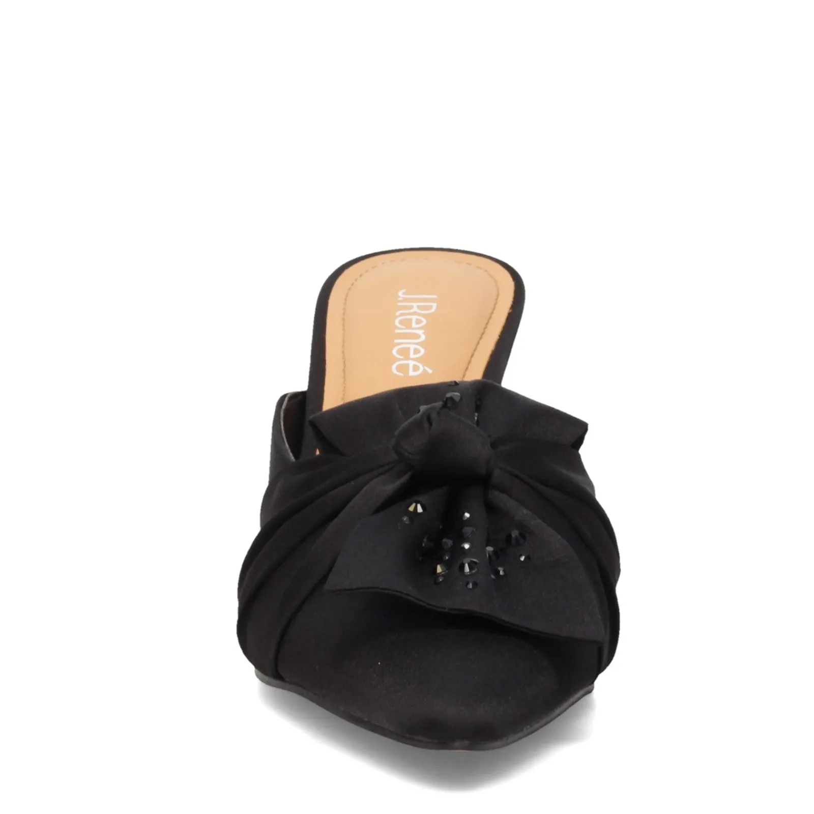 Women’s J Renee, Mianna Slide. These sleek dressy mules are perfect for that special occasion. The Mianna features a closed, pointed toe, a sleek stiletto heel and a luxurious satin fabric upper to compliment your dressy outfit.