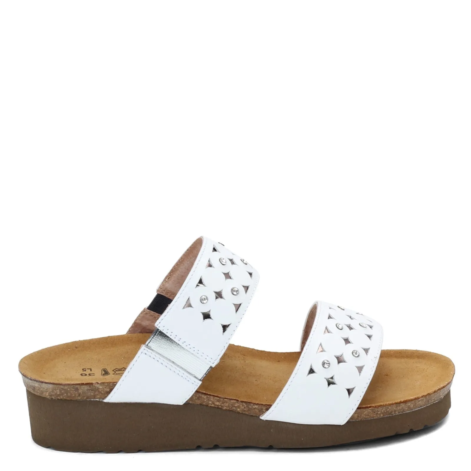 Women’s Naot, Susan Slide.. Flaunt your fashionable side with this feminine slide! With decorative cut-outs and sparkly rhinestones, this sandal is as pretty as it is comfortable.