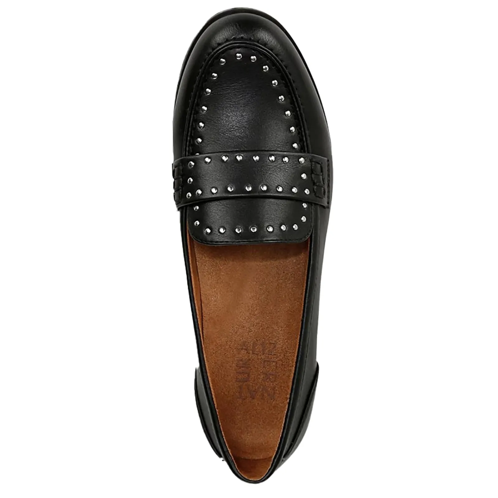 - Easy care manmade uppers designed using sustainable materials accented with metal studs