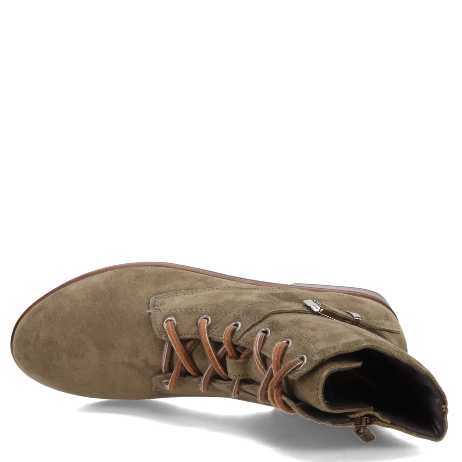 - Laced front panel with side zipper closure for easy on and off