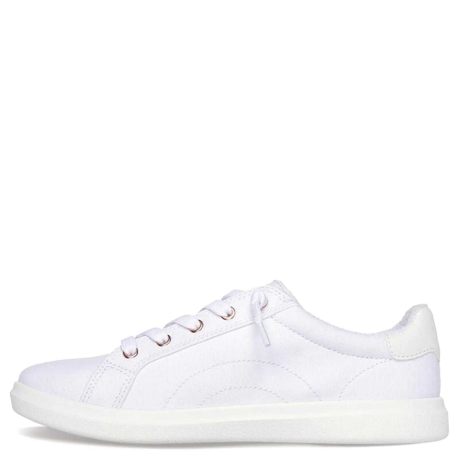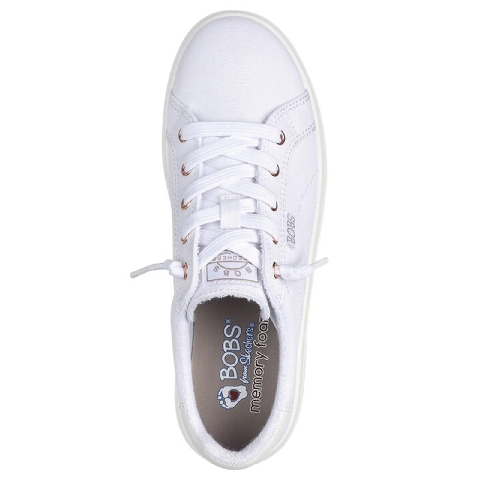 Relax in style with this BOBS from Skechers Memory Foam slip-on sneaker. Featuring a comfortable vegan canvas upper, deco laces and a cushioned memory foam footbed to support your steps all day