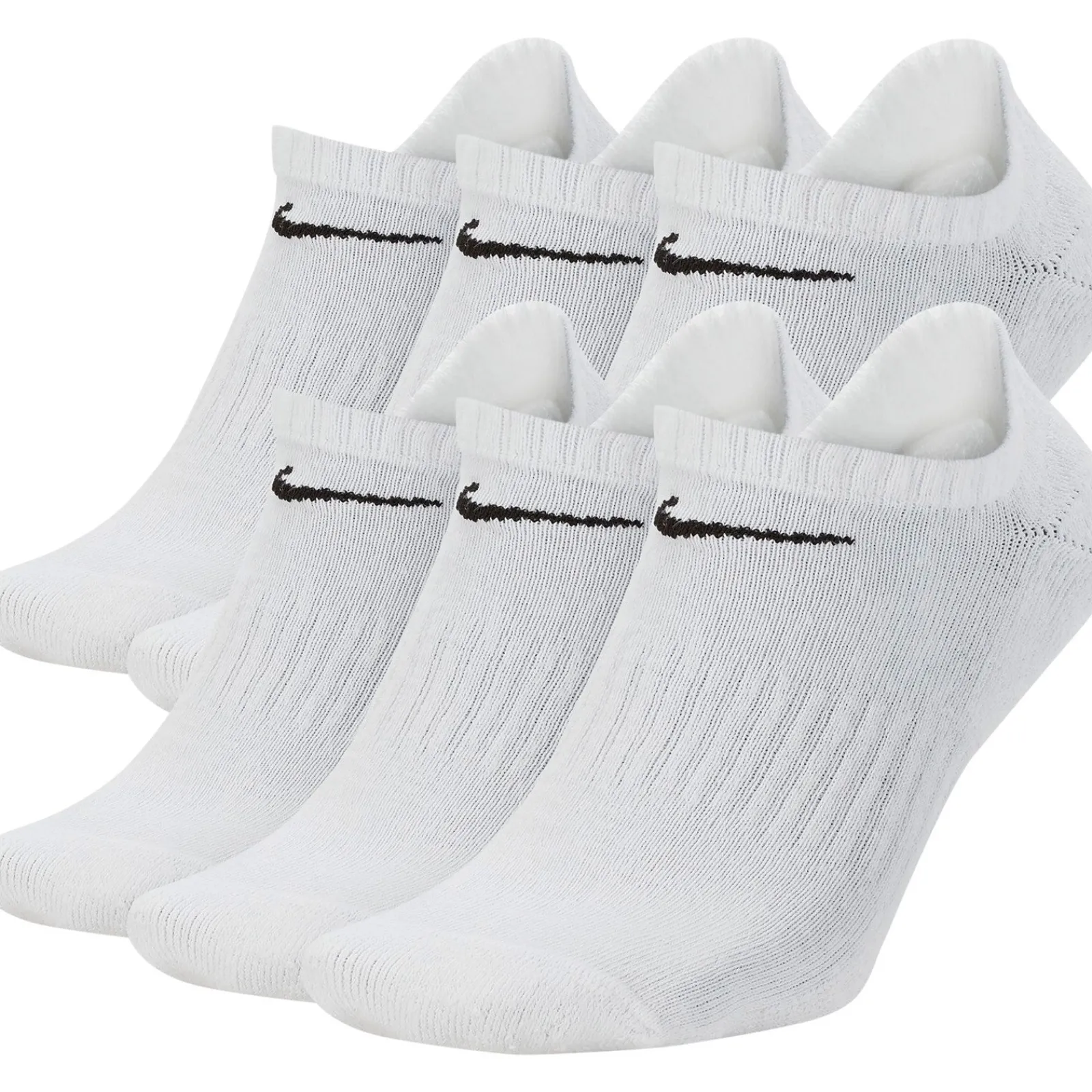 Unisex, Nike,Everyday Cushioned Training No-Show Socks (6 Pairs). Power through your workout with the Nike Everyday Cushioned Socks. The thick terry sole gives you extra comfort for footdrills and lifts, while a ribbed arch band wraps your midfoot for a supportive feel.