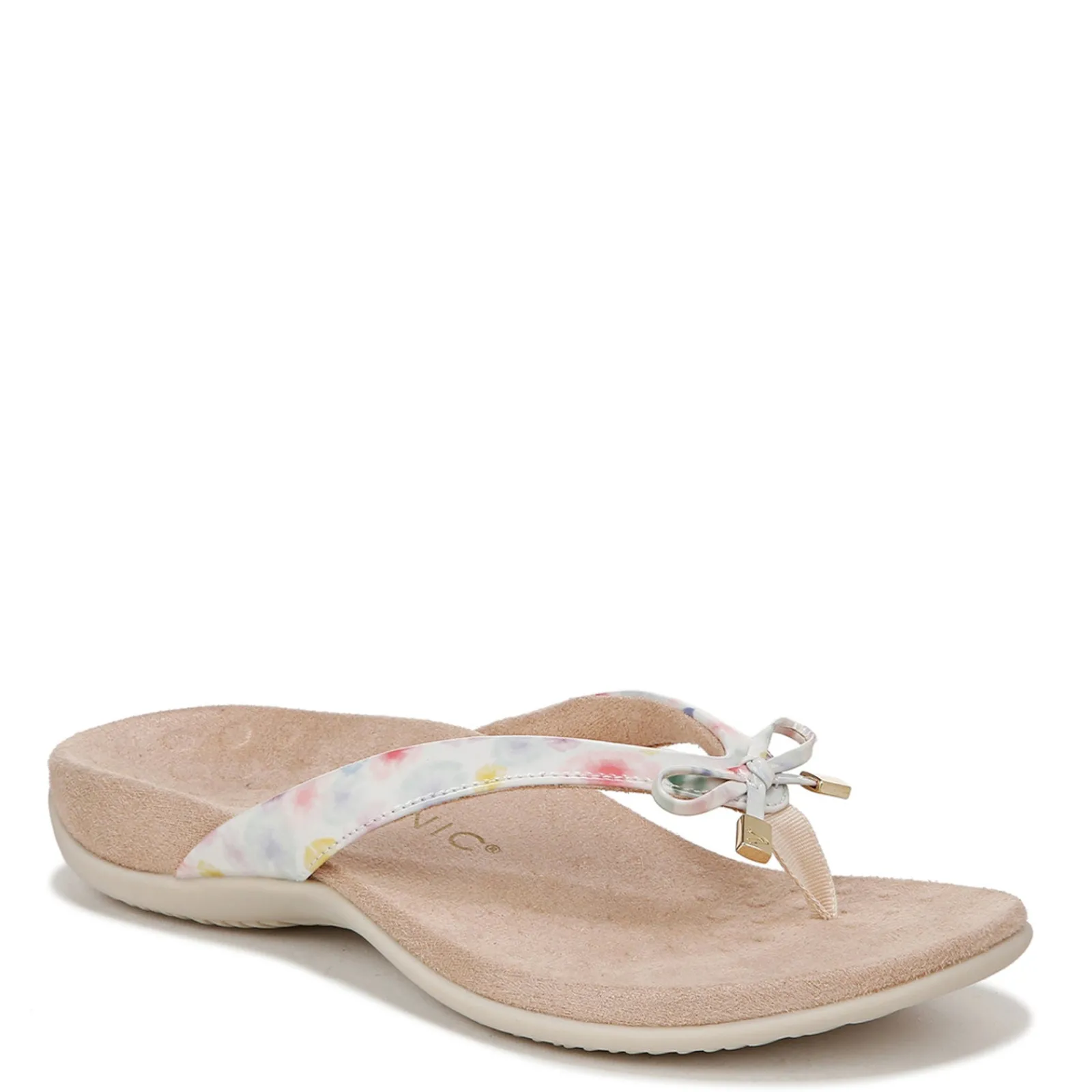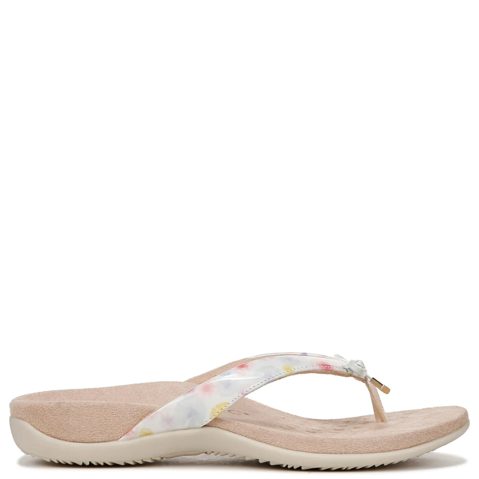 An all-day comfort flip flop with a fashionable twist. The podiatrist-designed orthotic footbed, with deep heel cup, helps to realign and support feet .