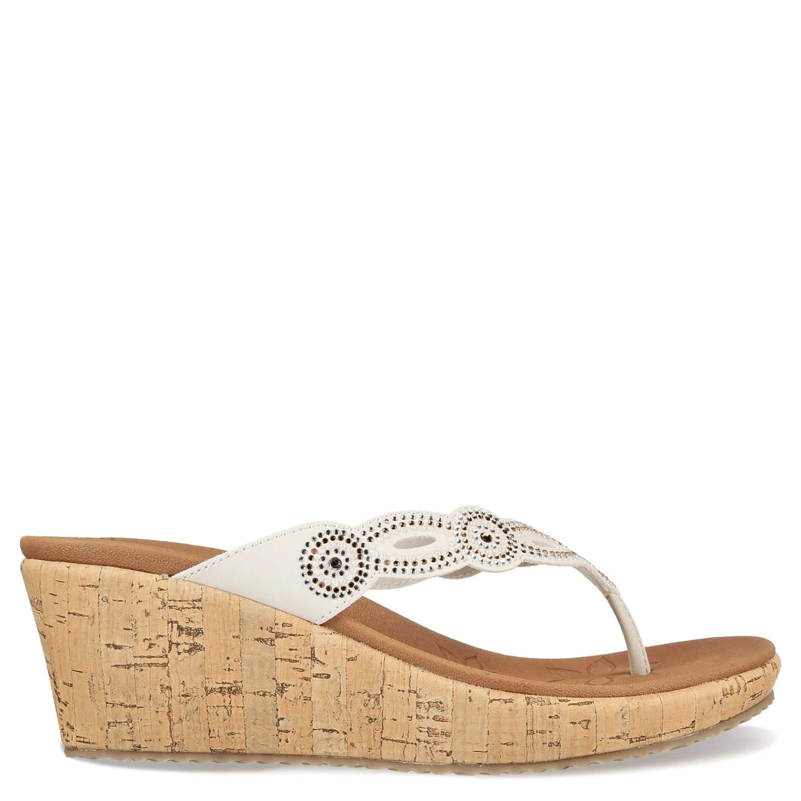 Women’s Skechers, Beverlee – Happy Charmer Sandal. Make the most of your sunny-weather style with a pair of Skechers Beverlee – Happy Charmer thong sandals. Crafted with 100% vegan materials, these all-day comfort shoes feature a Luxe Foam cushioned comfort footbed and a mid-wedge heel.