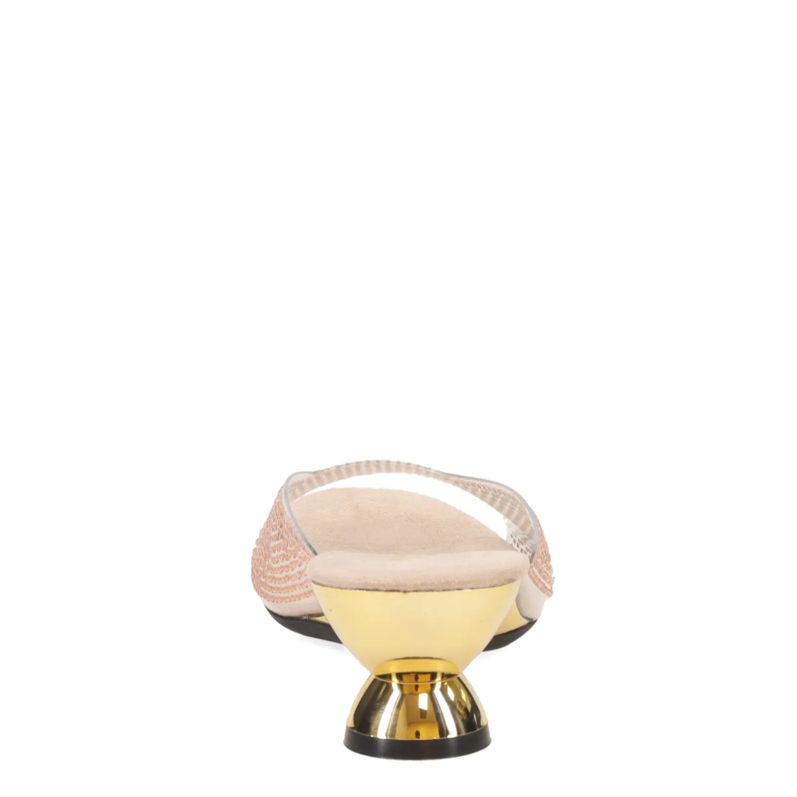 - Low sculpted metallic heel