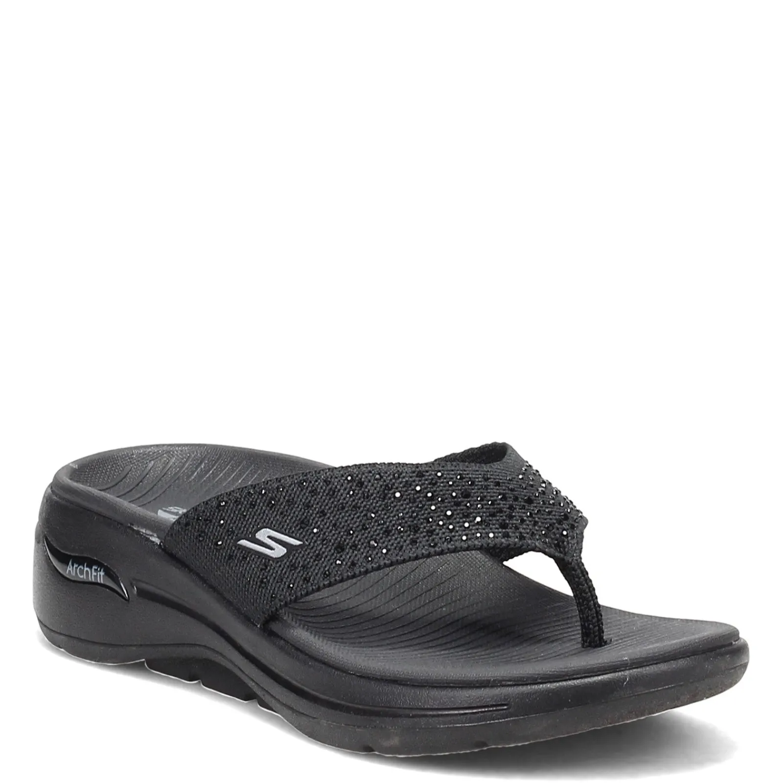 Women’s Skechers, GOwalk Arch Fit – Dazzle Sandal. A sparkly thong sandal style, with a stretch fit fabric upper, that will keep your feet cool and comfortable all day! You’ll enjoy the cushioned comfort of the highly responsive ULTRA GO midsole and the patented Skechers Arch Fit insole system with podiatrist-certified arch support.